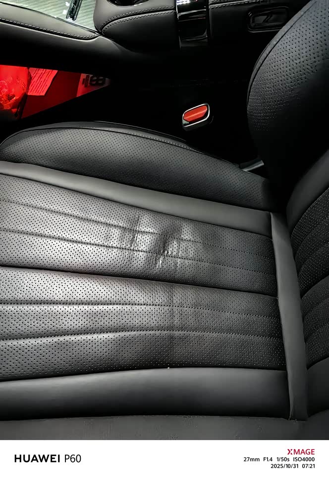 座椅咋就皱了了,确认是真皮无误。有时候前机仓有嗡嗡的低频共振声,售后说风扇散热导致。驾驶位的迎宾模式偶尔会出bug,ota3次了还没完全修复。