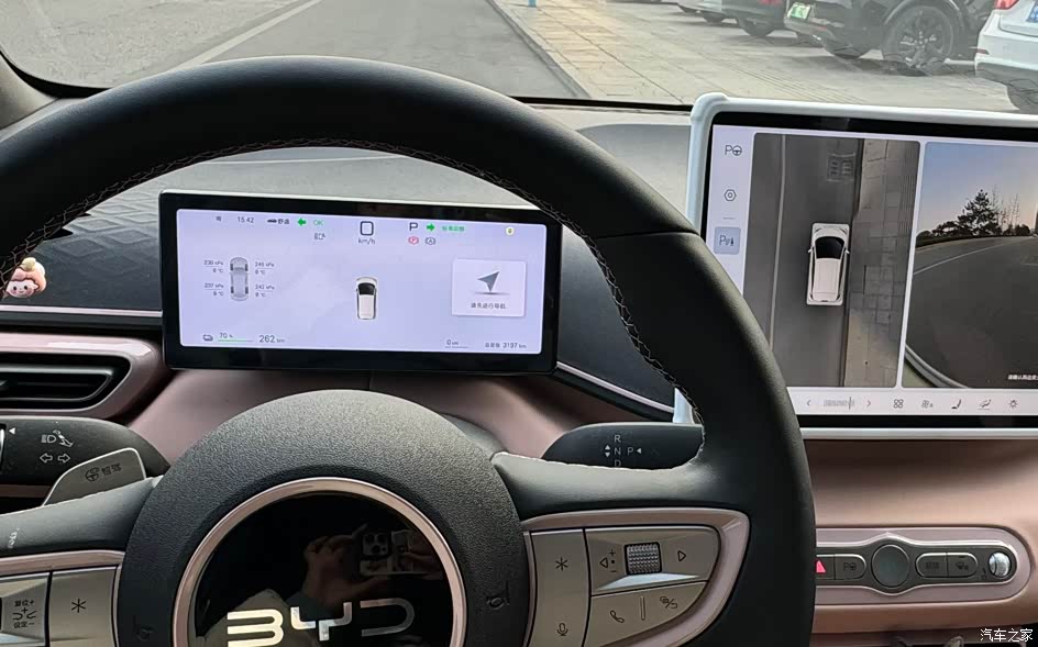 我喜欢小车很方便,对比了星愿跟缤果感觉太秀气了,海鸥的外观更酷一点,当时想选择黑色的,更酷,没有现货,加上夏天黑色车内温度会太高,没办法果断放弃了,选择了白色系,很耐脏 自动泊车很好用,加上比亚迪宣传的自动泊车中车受到碰撞比亚迪兜底,让我更放心使用自动泊车,新手到现在海没自己停过车,公司是地下车库,车位线很明显,每天都自动泊车,趁着泊车时间收拾好包,泊好车直接锁车走人 注:图二拍摄于地下停车场并开启自动泊车附近无人的安全状态。