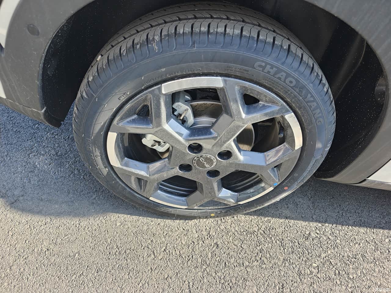 是我喜欢的米白色,不像白色那么刺眼睛,在夜里开车也亮一点。这个造型我觉得也很可爱的。这个车子的轮胎也比活力版大一点,感觉加九千块钱多很多功能特别值。