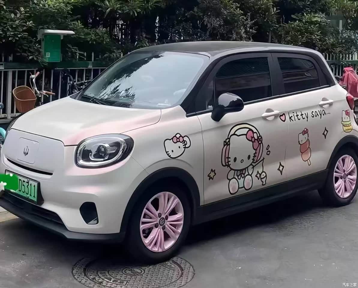 圆润的车身线条看着就可爱,选的草莓熊粉配色,女生见了都夸好看,前脸大灯圆圆的像个萌宠,晚上开灯辨识度拉满。轮毂造型精致,不是那种廉价的塑料感,看着很有质感。