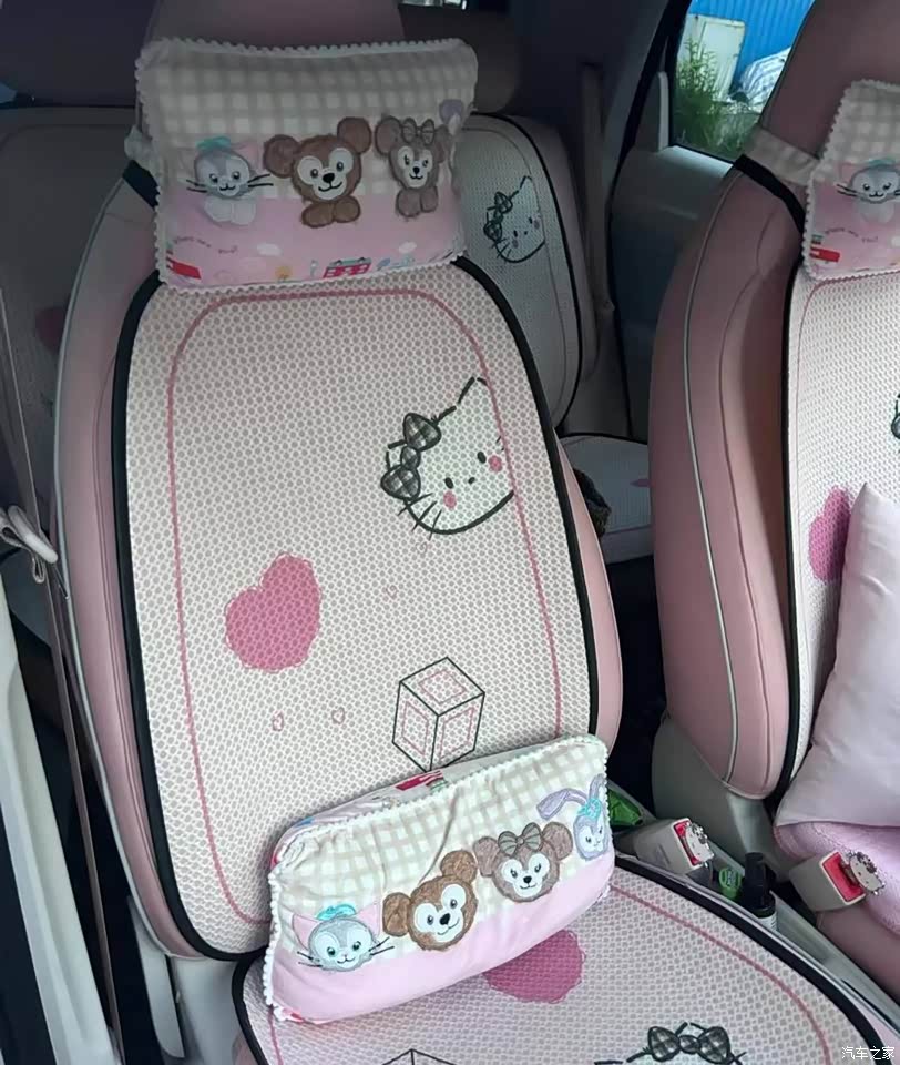 中控大屏尺寸够大,操作也流畅,追剧导航都很方便。座椅是织物材质,透气性不错,夏天坐久了也不闷,内饰配色和车身呼应,整体风格简约又可爱,很符合年轻人的审美。