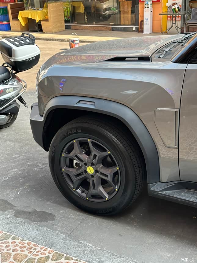 看到这轮胎就有一种稳当的感觉 ,高速稳,加速线性,但后段加速感受一般,方向盘力度3档可调,很人性化,