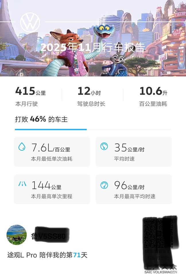 外观挺好看,我感觉我买这车,除了父母比较看重大众,另一个就是这个外观了,就感觉这款车稳重且大气,带点运动,比普通的途观L看着年轻话,尤其是晚上贯穿灯带+发光大众标+尾灯灯效,有点Fashion那味。但是前大灯没有灯效,另外26款的动态迎宾灯应该是减配了,只有常亮的迎宾灯了。车身的尺寸在这个价位上算不上突出,但也比我老车宽了近10厘米,过个限宽、小区门杆、停车挺费劲,好几次蹭在车位的崖子上。