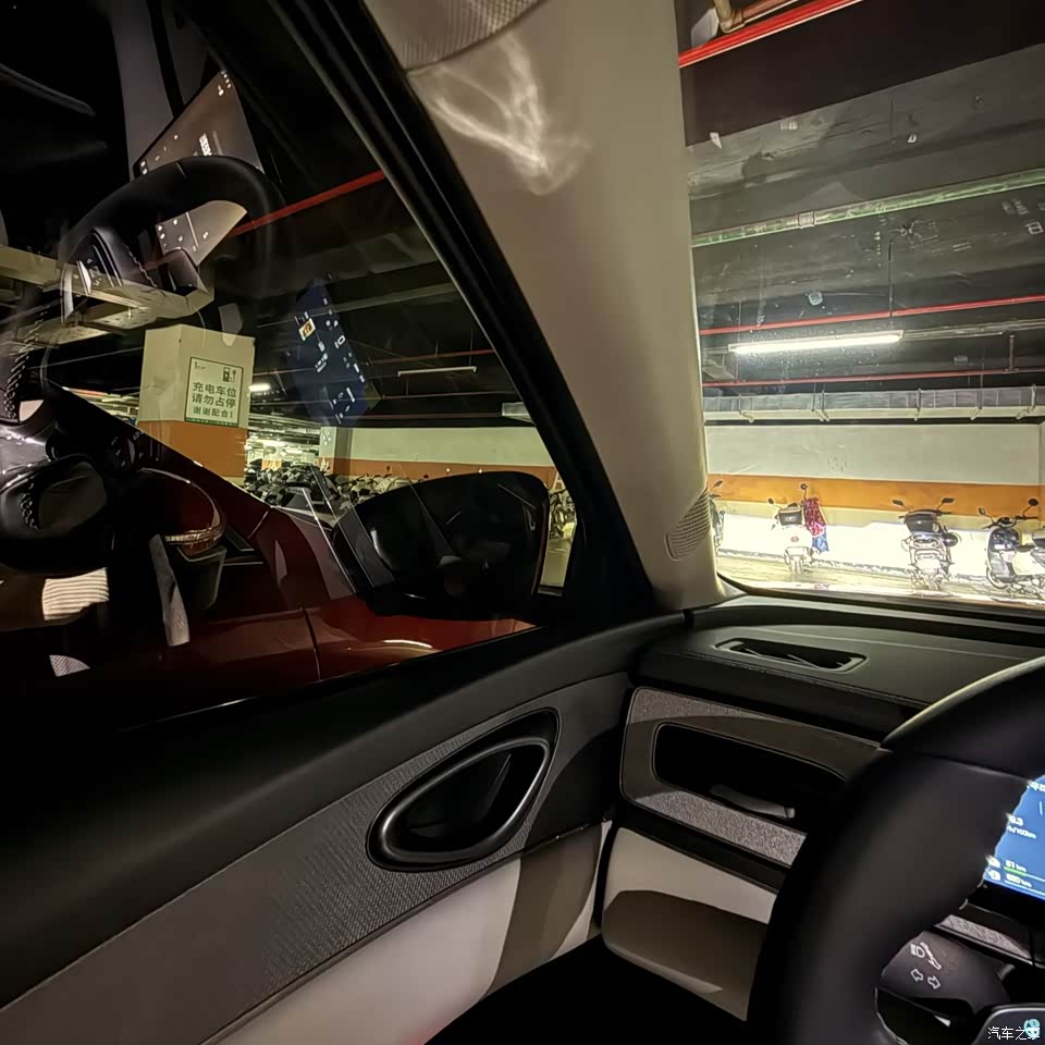 电门响应跟脚,动力输出如丝般顺滑,在城市车流中穿梭、变道,给人一种敏捷而从容的感觉。底盘调校明显偏向舒适,能过滤掉路面上大部分琐碎的颠簸,过减速带时车身动作也很干脆,没有多余的晃动。转向手感轻巧,但指向清晰,开起来完全不像一台大车,在窄路调头时尤其能感受到这种灵活性。
