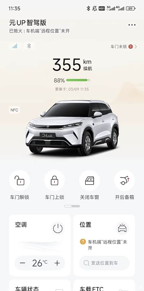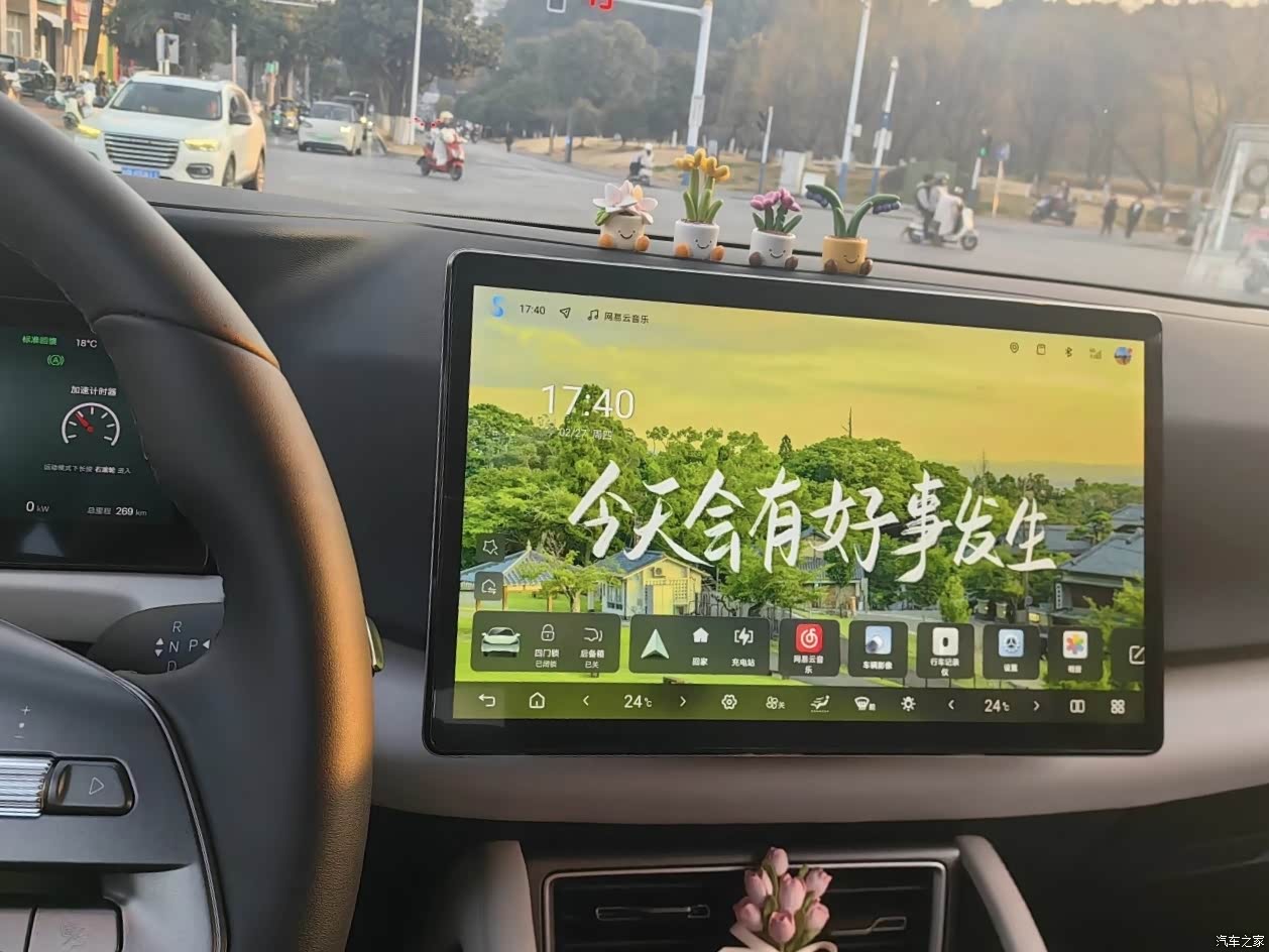 最满意的地方,其实是它给我的那种轻松自在的驾驶感受。电车本来就安静顺滑,元UP调校得尤其舒服,电门跟脚,转向灵活,在市区里穿行毫无压力。续航也实实在在,401公里的标称续航,我日常通勤加上偶尔开空调听歌,实际能跑到三百四五十公里,没有太多焦虑,一周充一次电基本就够了。周末跑个短途郊游也完全能胜任,快充补电速度也快,吃个饭的工夫电量就回了一大半。