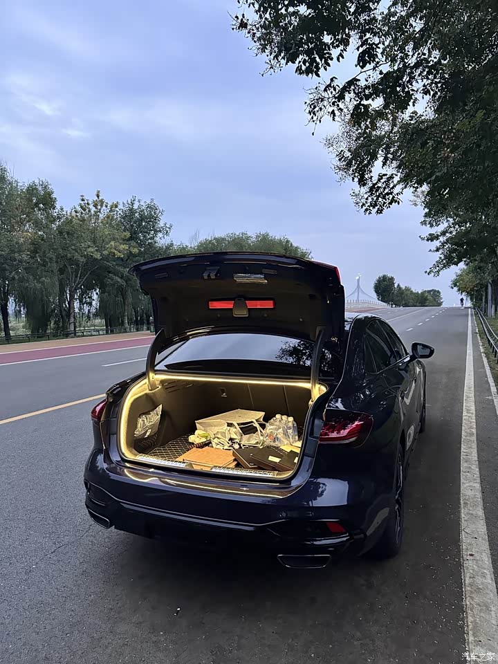 周末自驾游时,放下婴儿车+露营装备完全没问题,电动尾门带感应开启,手上拎东西时用脚扫一下就能打开,很方便。
