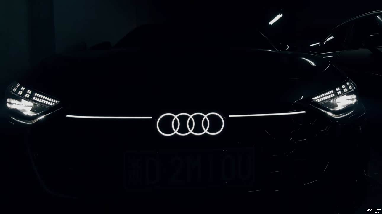 前脸是奥迪标志性的六边形进气格栅,熏黑蜂窝状设计更具运动感,发光四环logo搭配矩阵式LED大灯,科技感与辨识度十足。