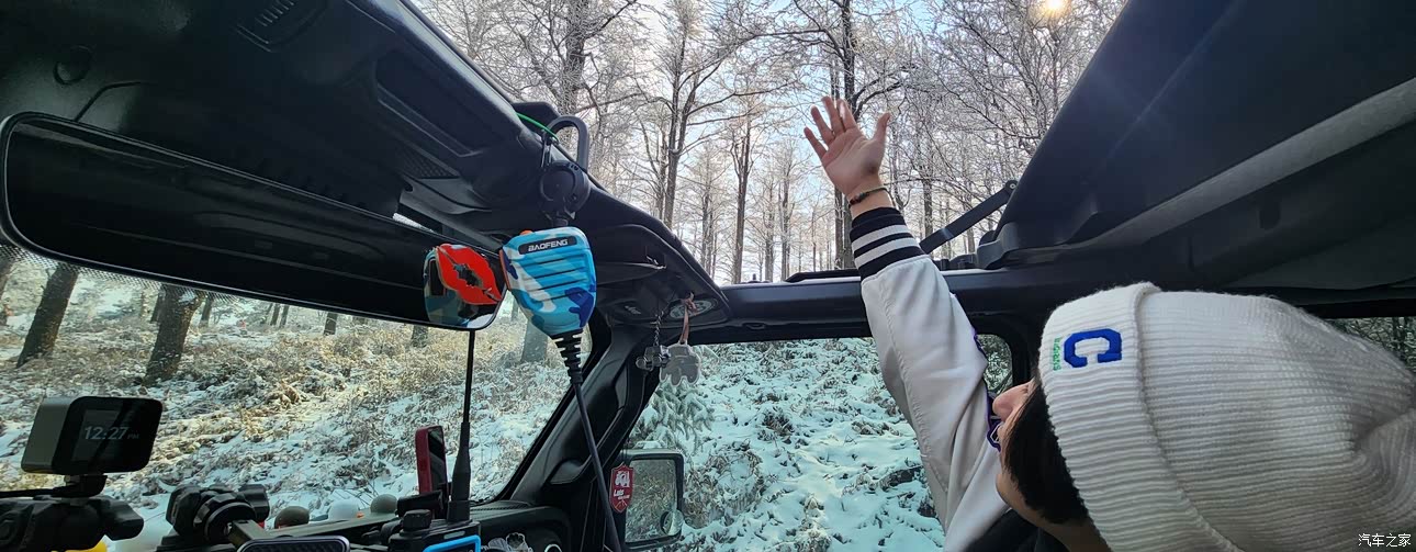 特别喜欢硬派风格,不用特别花哨的内饰,越野车讲的是出行时必要的装备,中控台也是可以改装增加车载用品使用性,出游必备的车台和手台,行车记录仪和运动相机,让原本无处安放的物品有了合理的固定位置