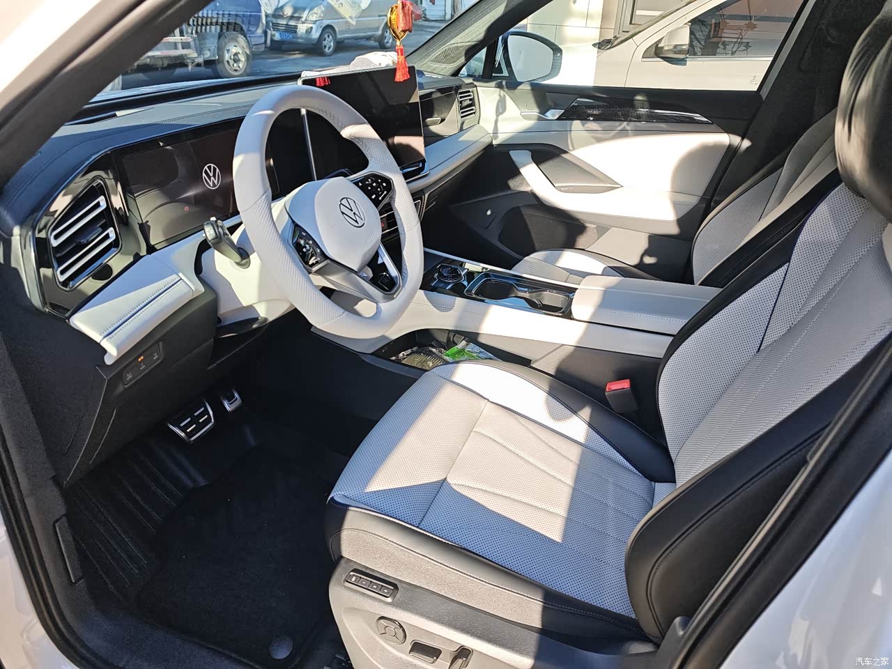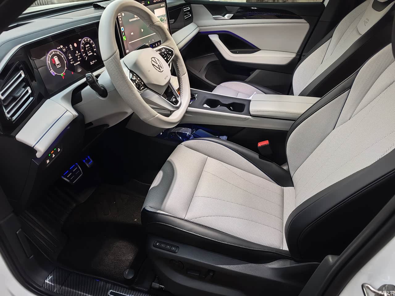 大众套娃内饰没有太多惊喜,中间三连屏稍微带点科技感,8155的芯片操作也挺丝滑一点不卡顿。我选了黑色内饰,座椅方向盘浅灰色比较温馨感。中控扶手等地方虽然都做了皮革包裹但是摸起来挺廉价的(PU材质不是很厚实)对比了同级别同事的理想I6 简直没法看[打脸]。比较满意的地方座椅填充柔软舒适,虽然没有真皮材质但是好在长度宽度都比较舒服,三区自动恒温空调有点高大上其实一个样没感觉有啥区别[捂脸],后排中间地毯有高起大约15厘米不咋方便(跟电车完全没法比[捂脸])。