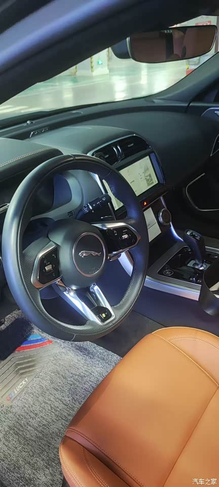 选的是外绿内棕,捷豹的绿,叫赛车绿,这种绿很特别,看起来不炸眼,但阳光下又闪闪发光,带着一些细闪,看起来很高级。 尾标搭配捷豹经典的小黑豹,酷酷的,轮毂也是黑色的,与绿色外观呼应,显得格外优雅,运动且独特,回头率很高