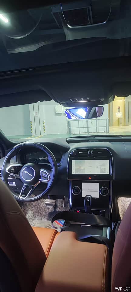 内饰 跟路虎是同款的,有两个屏幕,其中空调旋钮带有电子温度显示,给人一种高级感觉 有十个颜色的氛围灯,氛围这块也是杠杠的