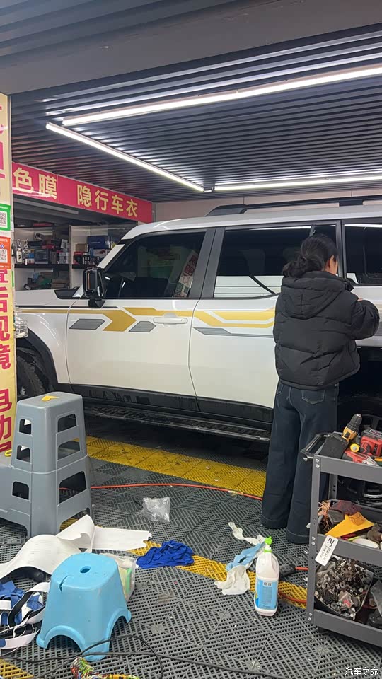 加装了车顶行李架,车身拉花,瞬间看着舒服多了