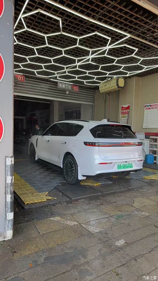 外观我选杜若白,实车看着不是硬白,带点珠光,干净,车身比例顺眼,前脸贯穿式日行灯,星钻格栅会发光,晚上识别度直接上来,车长4915mm,配20英寸轮圈,侧面线条拉得很长,腰线不抢戏,尾部贯穿式尾灯和前脸呼应,整体看着稳,细看有科技细节,家里人都能接受,开出去不刺眼,靠近看质感在。