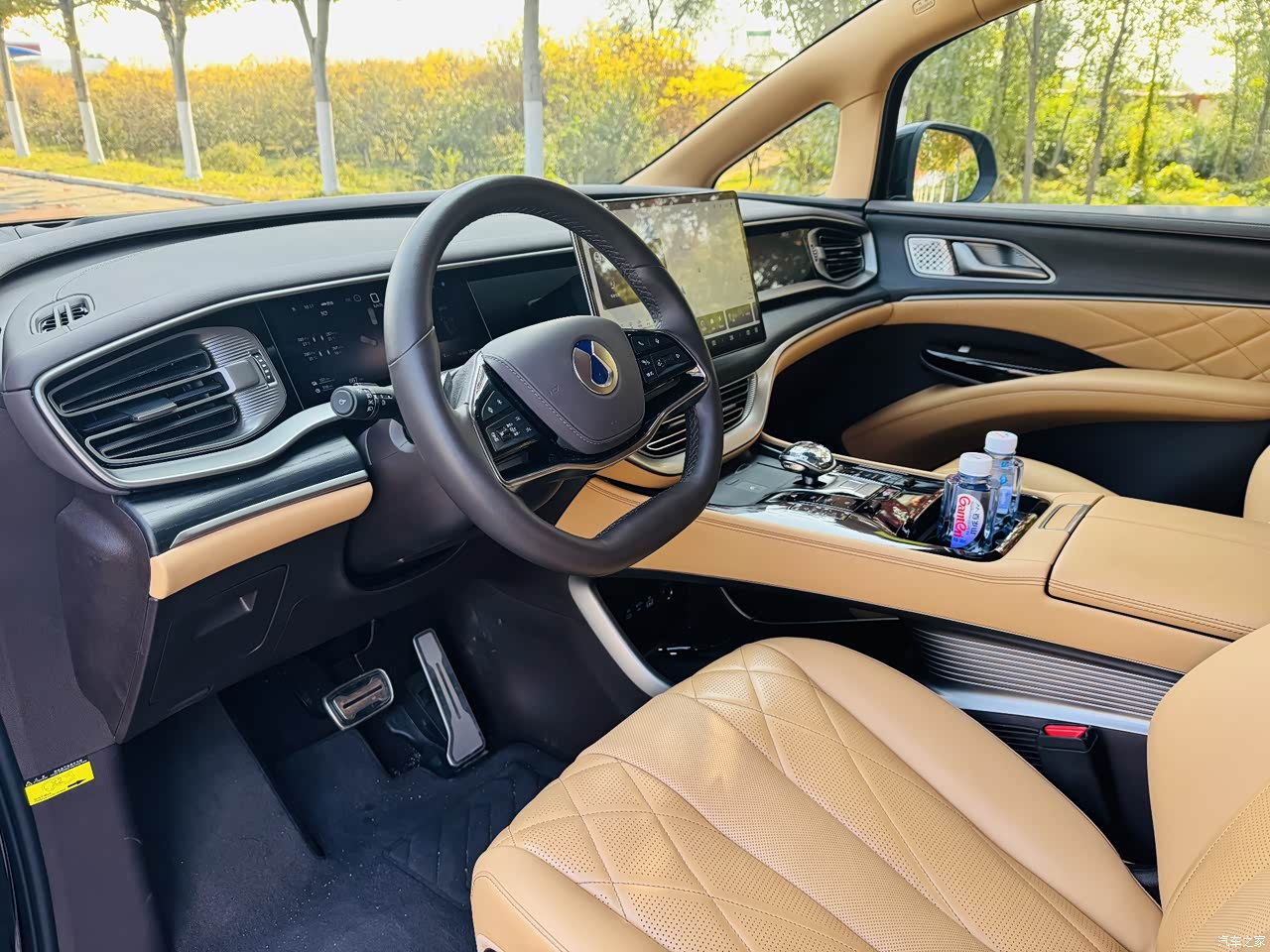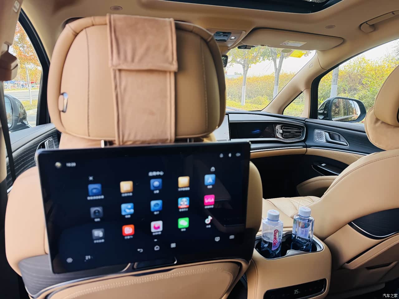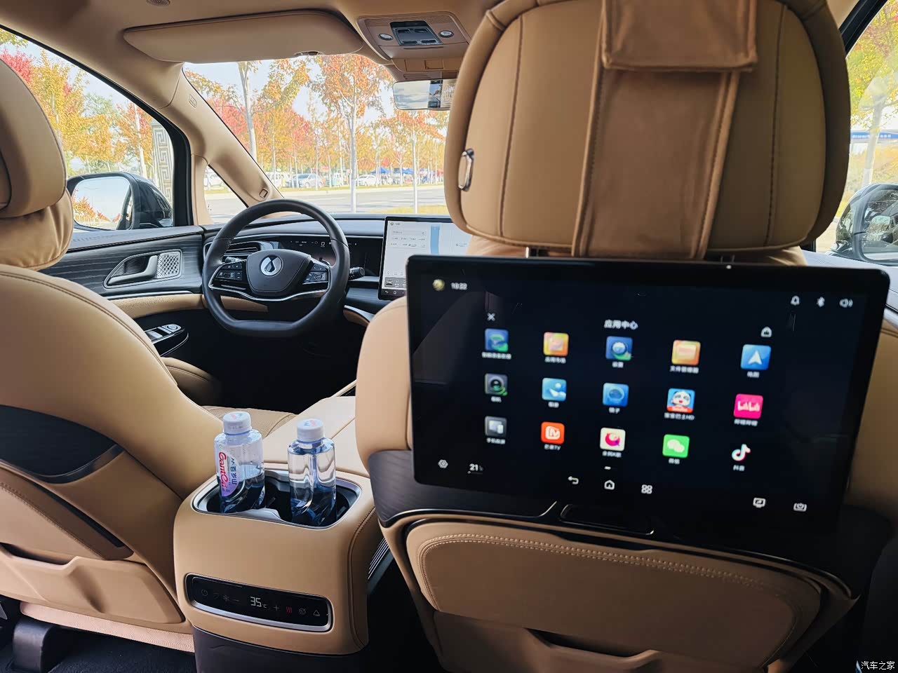 1. 前排:门板空间可以简单放点饮料,女王阁取放不太方便,一般放餐巾纸、ETC,或者其它物品;中央扶手下面我一般放点票据、小工具、卡类、钥匙啥的;显示屏后面第三方有开发的储物盒,待升级改款后再购 2. 中排:冰箱很实用,过年回家的时候一路热饭团、玉米、盒饭啥的;两侧门板只能简单放瓶水或官方的便携式垃圾桶;座椅侧边的水杯架也蛮好的,唯独就是大家心心念念的小桌板还未到,希望官方能做成与座椅一体的,让车主自行前去店里安装 3. 后排:中间能拉出做扶手,只是扶手没有掏空成水杯架;两侧可以放水杯或手机 4. 后备箱:这个是很赞的,远超想象的大空间;塞得满满的,只是路上颠簸时,磕碰划伤了侧板和后备箱门板内饰,已经购买了全包垫等安装