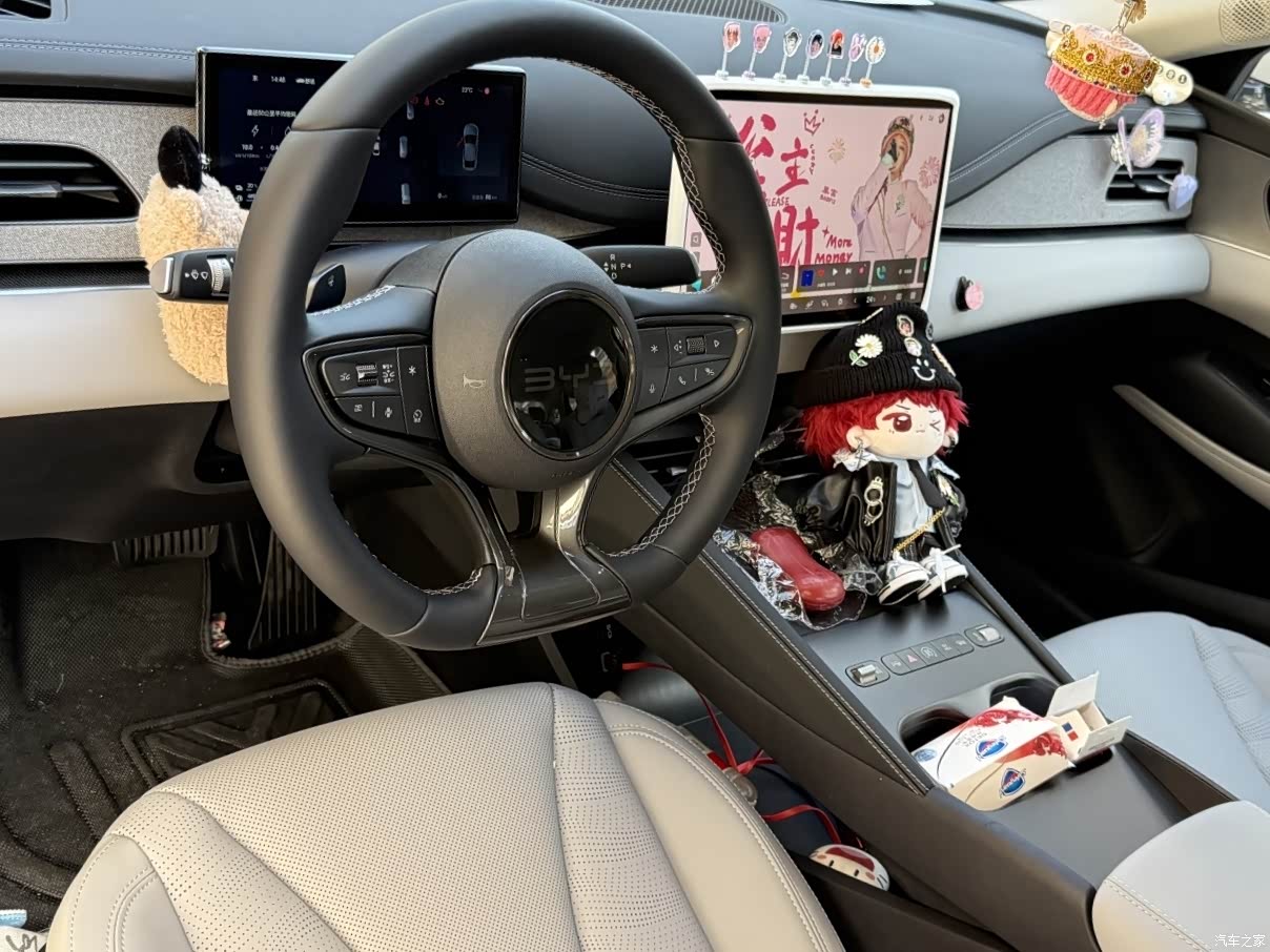 坐进车里,第一感觉是简洁清爽。没有太多花里胡哨的按钮,大部分功能都集中在中控大屏上。内饰用料挺扎实,手能摸到的地方大多是软的,座椅的仿皮材质质感不错,坐着包裹感很好。新车刚提回来时有点气味,散了大概一两周就基本没了。