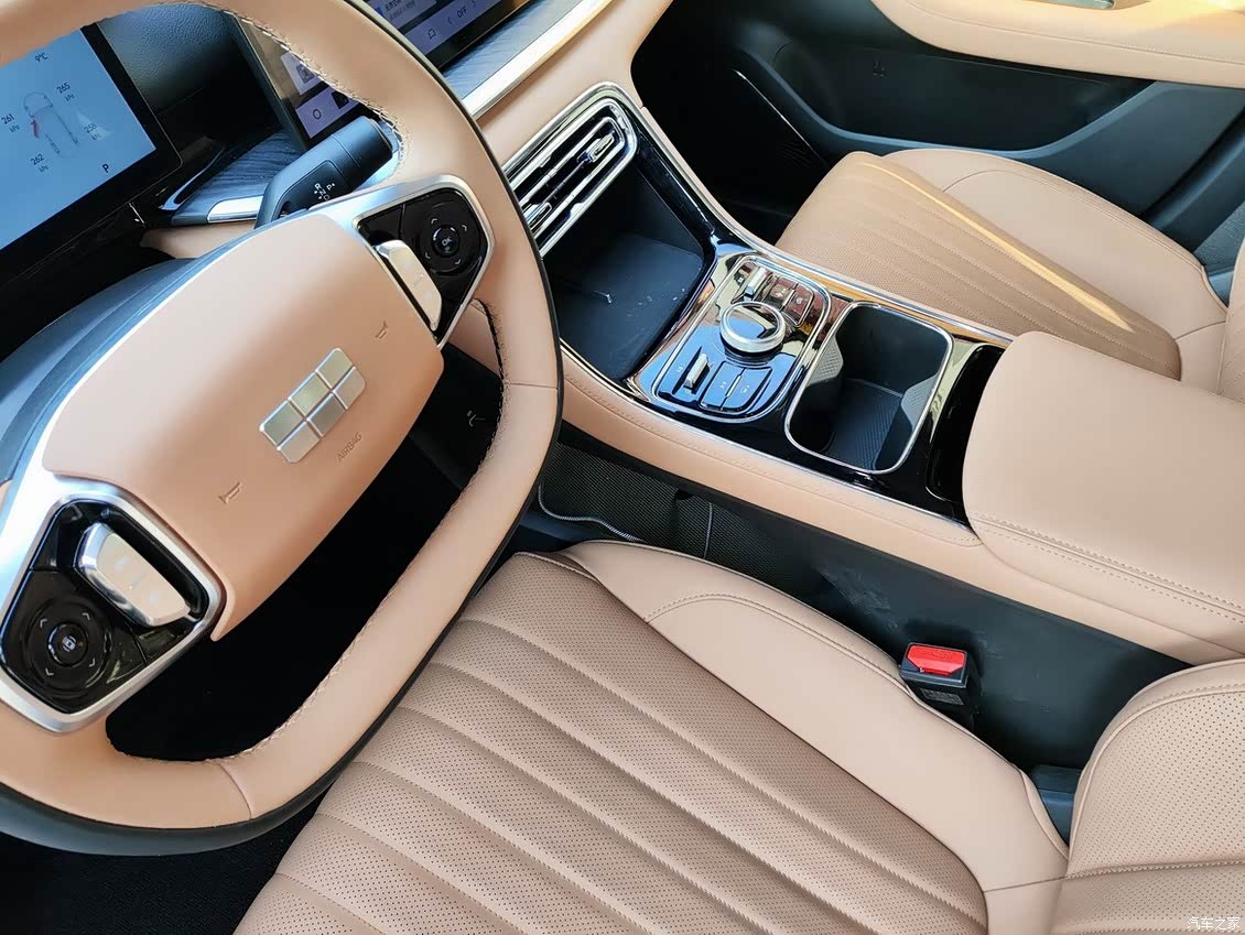 内饰的整体风格是比较简约的风格,中控台上有一块超大尺寸的悬浮式触控屏幕。方向盘采用了皮质包裹、缝线工艺等细节处理也很到位!座椅舒适度很高,且支撑力度适中,长时间驾驶也不会感到疲劳或不适感。