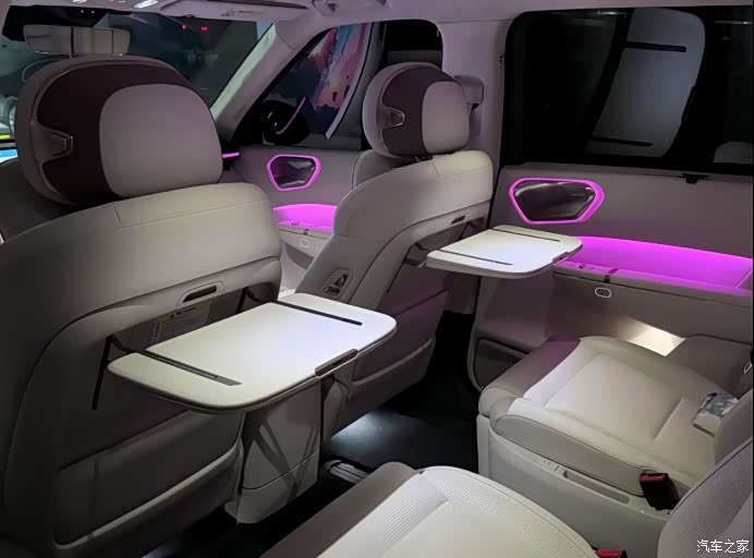 5门6座的布局,后排地台纯平,腿部空间巨大,可以翘二郎腿。中间这排座椅还能旋转,可能是因为6座的缘故,坐满人的情况下,每个人的座位都比较独立,导致后排整个空间相对有一点点挤,但是每个人坐着是很舒服的。