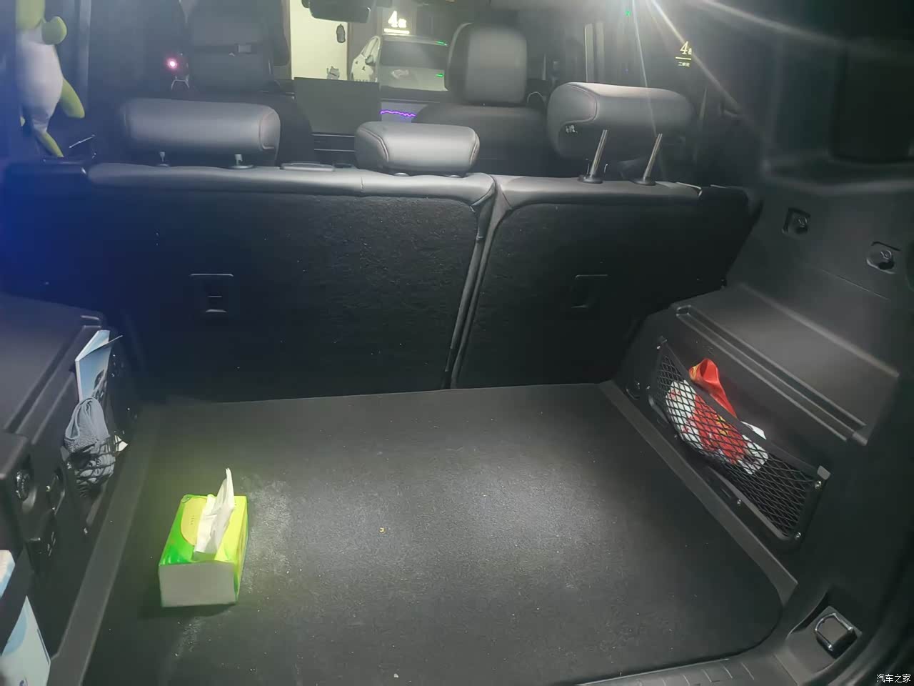 空间感觉还是可以的吧,就是两侧的轮毂有点大,但是也无所谓,放三个行李箱没啥问题,如图。目前坐着很舒服。后排座椅空很大,不挤。