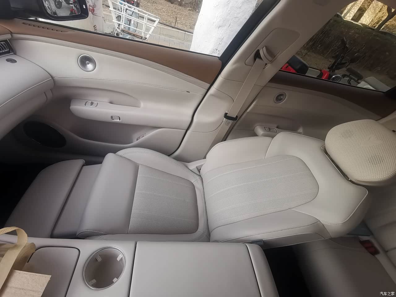当初在挑选颜色的时候,并没有花费太多时间去纠结,紫色一下子就吸引了我和媳妇儿的目光!它并非那种艳俗的亮紫色调,而是一种带有沉稳质感的深紫色,当阳光照耀其上时,还会呈现出细腻的金属光泽,看起来特别有档次,相较于黑白灰等颜色而言,它的辨识度要高出许多。车身的线条十分流畅且颇具大气之感,车长达到4915mm,与20英寸铝合金轮毂相互搭配,整体比例非常协调。隐藏式门把手以及主动闭合式进气格栅,都透露出新能源车型所特有的科技气息。LED矩阵式大灯在夜晚点亮之后,亮度颇为充足,而且还能自动完成远近光的切换操作,无需人为手动去调整,细节处理得相当到位。