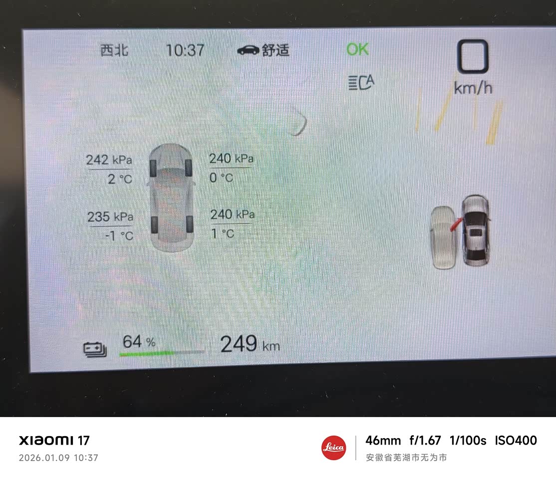 420的标准续航,冬天达成率也不错,好几天充一次电就可以了,上班通勤完全够用,出出远门也没有太大的焦虑,