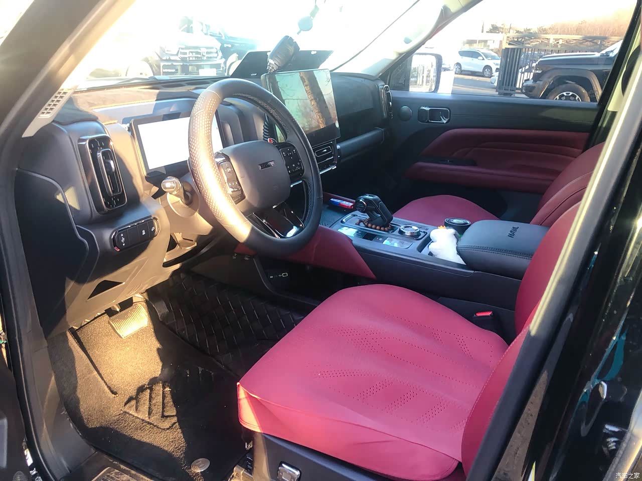 内饰风格就是那种经典的硬派越野车感觉,不花哨,但该有的都有。用料大部分地方是软的,手感不错,座椅是真的舒服,宽大厚实,包裹性好,开长途也不觉得累。熔岩红内饰,奔驰G车主看了都说好,哈哈哈