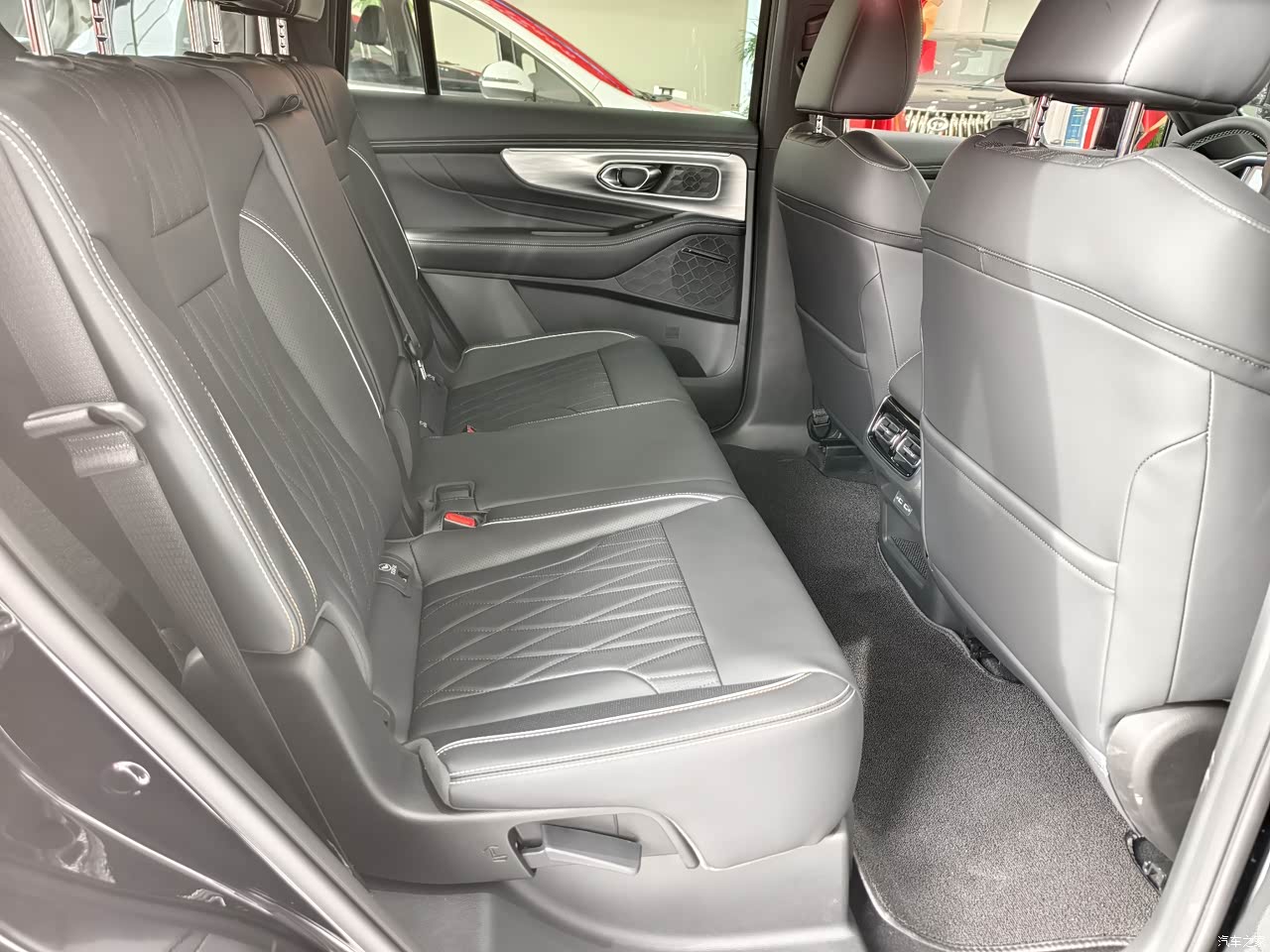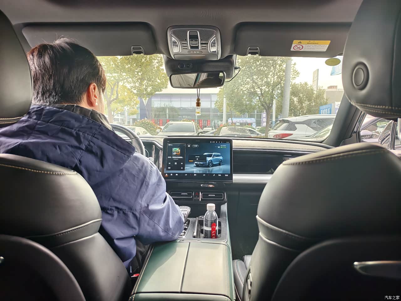 这款车内饰配色一般,普普通通的黑色没有太大的亮点,唯一的优点,估计是耐脏吧!中控屏比较大,流畅度还可以!坐在后排也可以,单独控制空调温度,设计还是比较用心的!