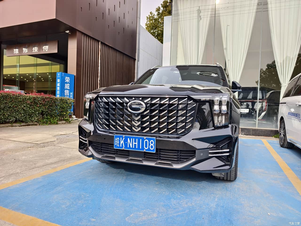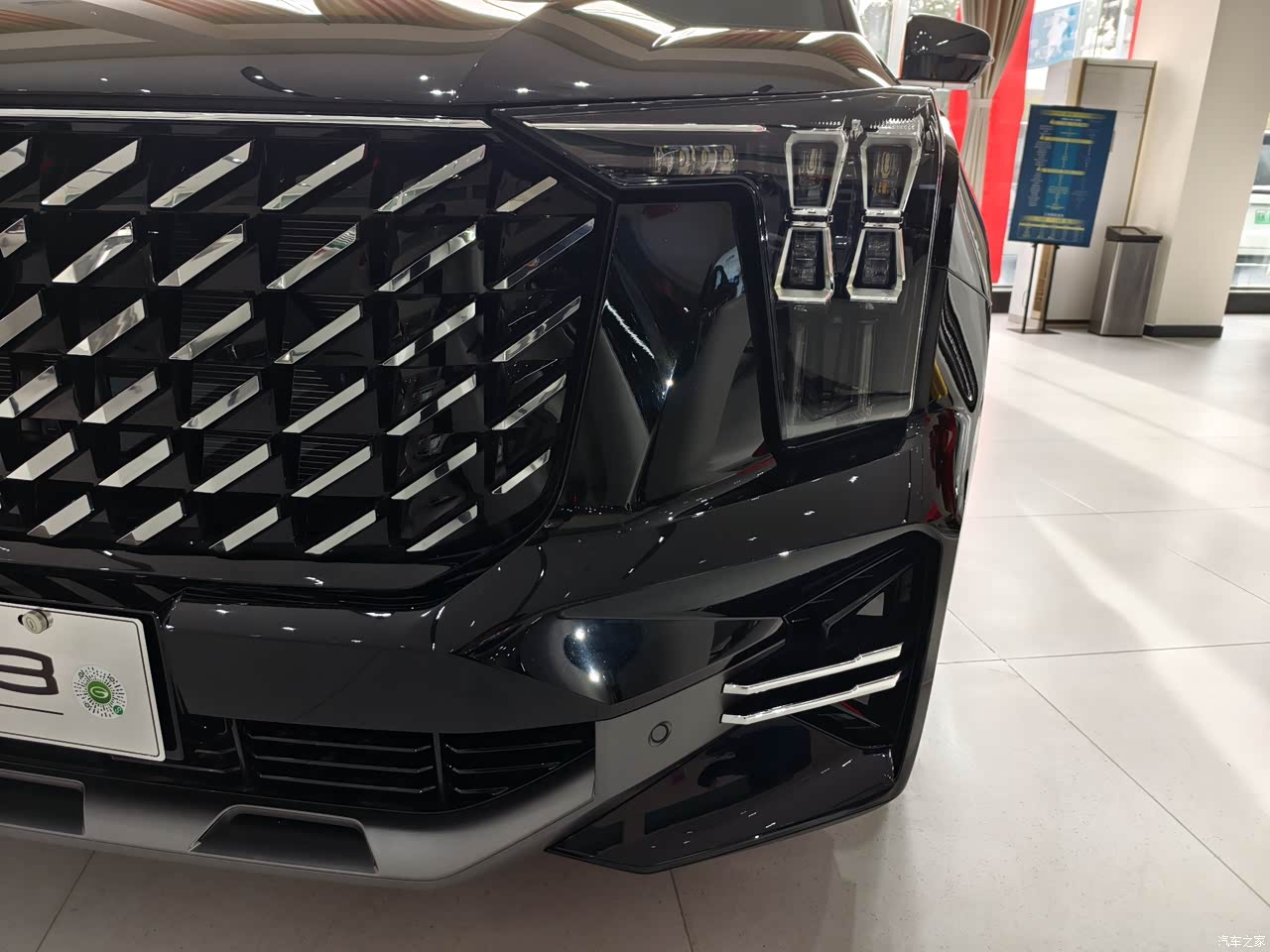 之前买车时,老公一直惦记传祺GS8,后面耐不住我的纠缠选了向往S7.虽然选择了S7,但是老公对这款车还是念念不忘。今天过来保养爱车,趁这会车没有保养好,去展厅看看GS8哪里这么吸引人! 说实在的在男人看来这外观确实很迷人,有角有棱,很硬派的SUV!很能突出男性的阳刚之气!矩阵式LED大灯,很有设计感!