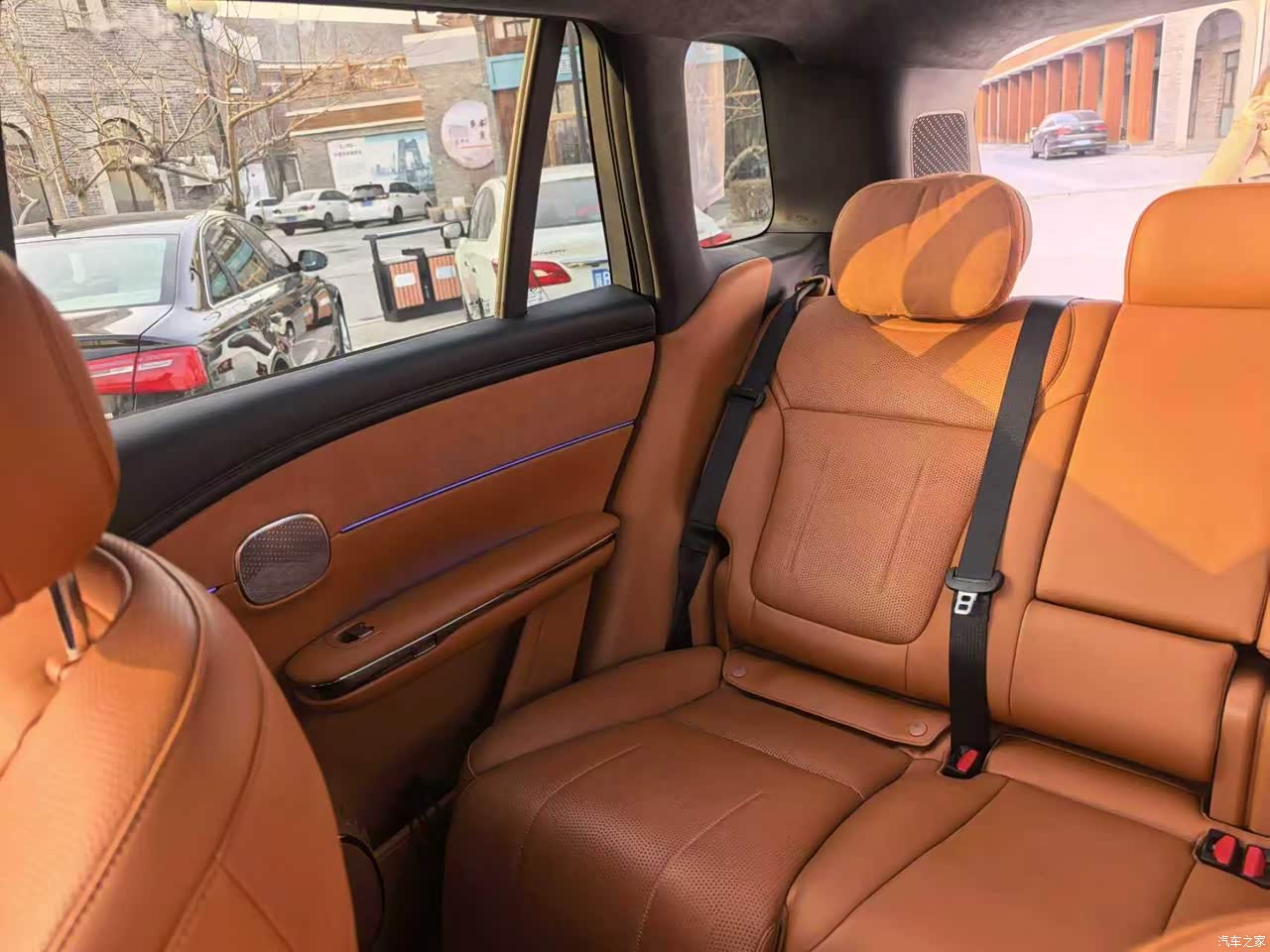 车里空间是绝对管够,我坐前排把座位调舒服了,再去后排看看腿前面还空着老大一截,坐三个人肯定没问题不挤。