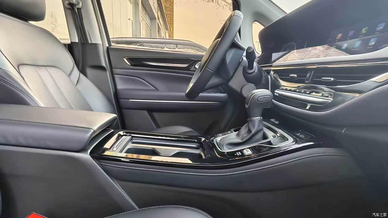 内饰的座椅材质是仿皮的,包括档把下面还有水杯以及可以放手机的地方。还可以保留很多实体的按键,我觉得这是我需要的地方,包括中控大屏也是屏幕很清晰,连起来的屏幕一看就是有很高级的感觉。
