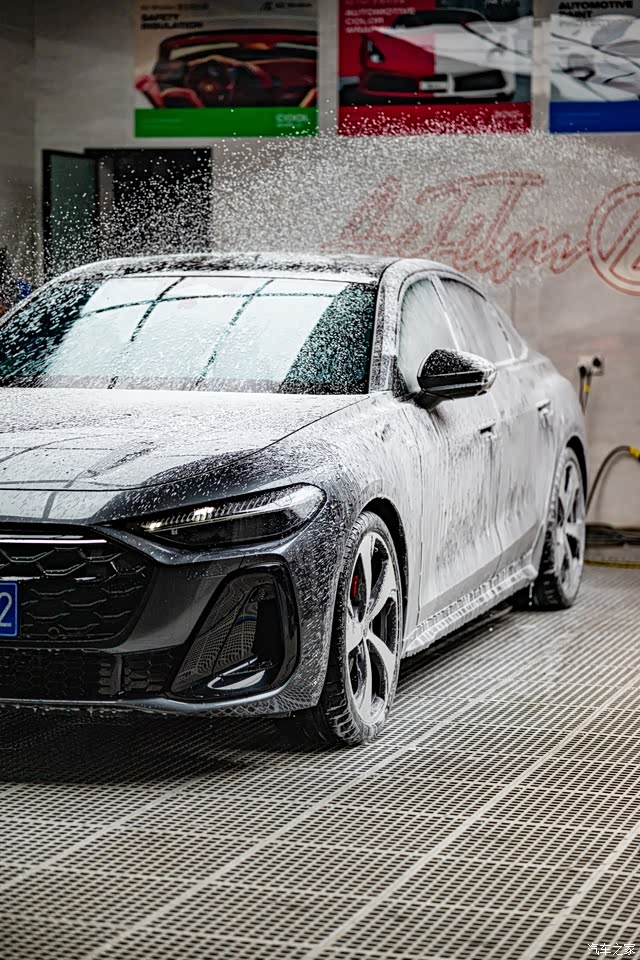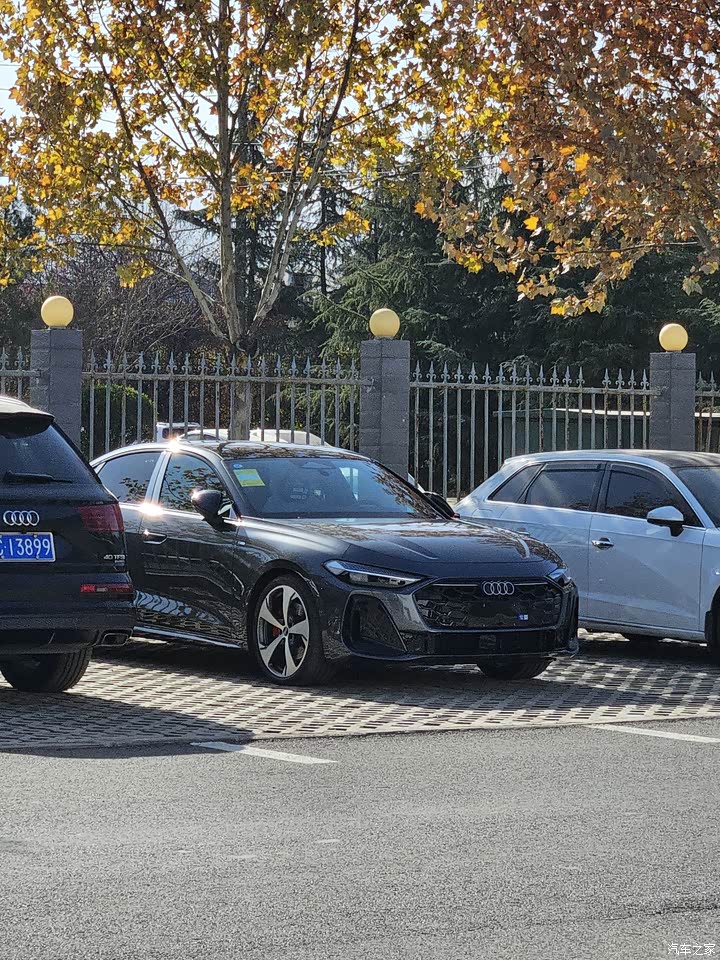 车头造型整体非常有有奥迪家族式特点,整体气质与A6L有些许相似,唯一小缺陷是发光车标与大灯随动,无法单独关闭。