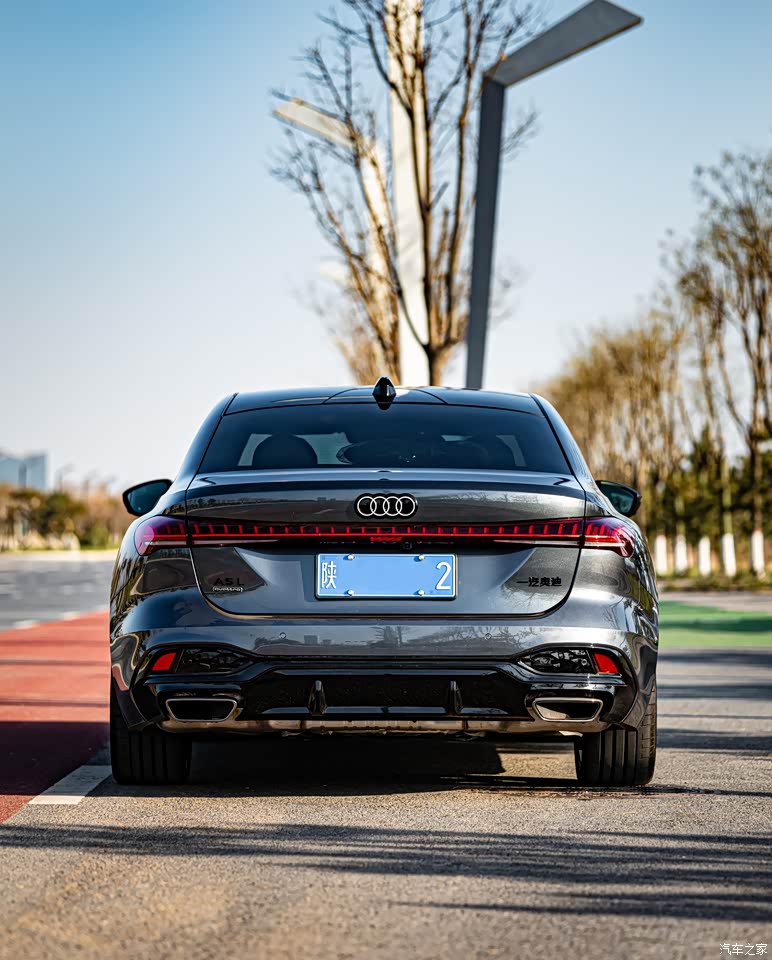 车位设计也是我十分喜欢的部分,双出排气加黑色包围杀伤力十足。尾灯十分具有辨识度,几百米开外都能精准认出是一台奥迪A5L