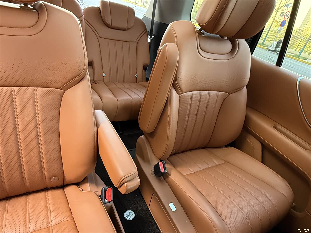 车的底盘高,视野非常清楚,有一次我上高速,下大雨,小轿车都往服务区里边跑,我的视线几乎没有受到什么影响,看得非常清楚。我身高178,算是中等偏上的身高,我坐在第三排头部空间还有差不多2个拳头的距离,腿部空间还有1拳的距离,坐着还是没有什么压迫感的。