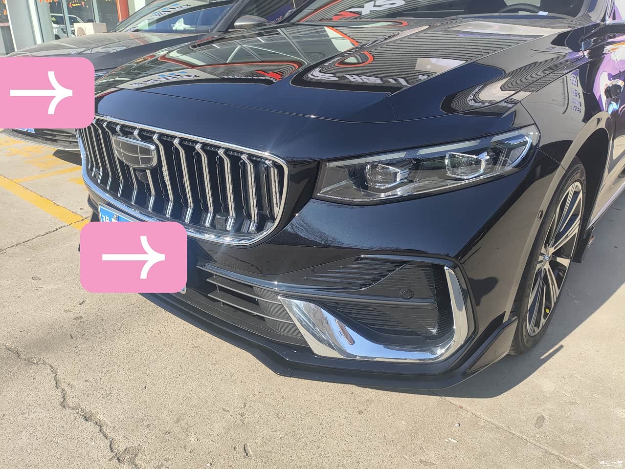 往那一停我说这是十多万的车,你信吗,真是亮,帅死了,前脸没有杂乱的外饰,不张扬显大气,耐看型的车越看越喜欢,前脸是真好看啊,直瀑式前格栅很有辨识度一看就是吉利的车14根竖条镀铬金质感拉满,还有运动套件加上轮毂红色的大卡钳,怎么能设计出这么完美的车呢,颜值超在线的,新车嘎嘎亮啊,一排车当中就我的最亮眼嘿嘿,当个镜子照脸上的斑斑点点痘痘痘印都是看的清楚,是个年轻人看一眼都能相中吧戳中我的心,这颜值和我一样,有排面。