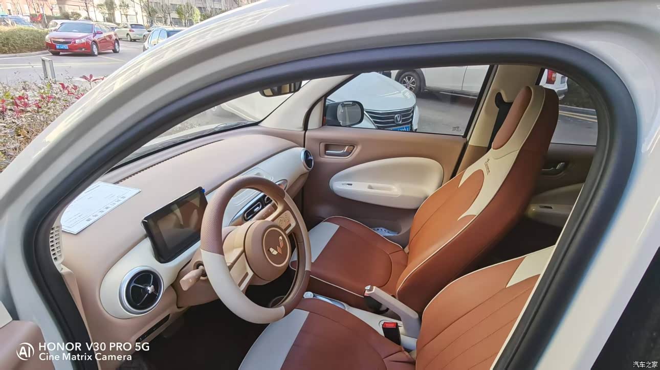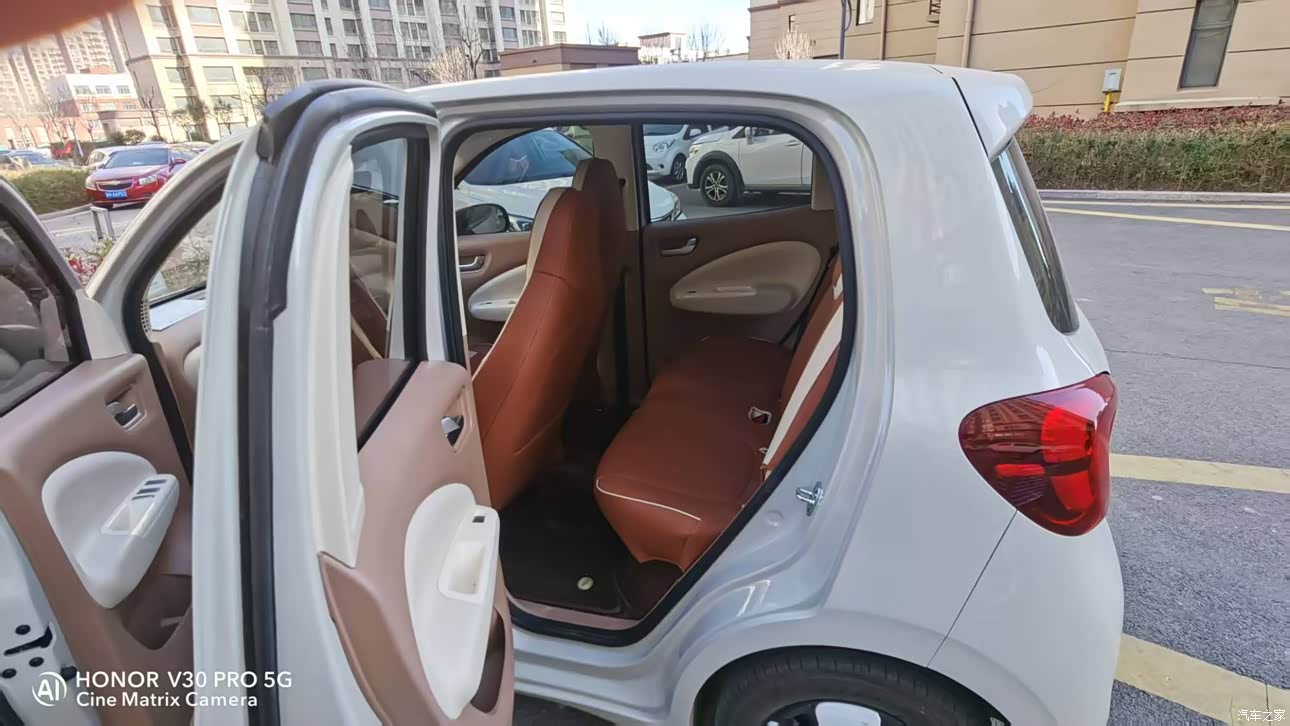 造型圆润可爱,辨识度超高!我选的奶茶色,简约耐看还耐脏,方方正正的车身搭配小巧的轮毂,走在路上回头率不低,女生开特别合适。四门设计比老款两门版实用太多了,车座椅不用移动,孩子上下车不用猫腰,日常上下车更方便,车身线条简洁利落,没有多余的装饰,完全符合代步车的定位。