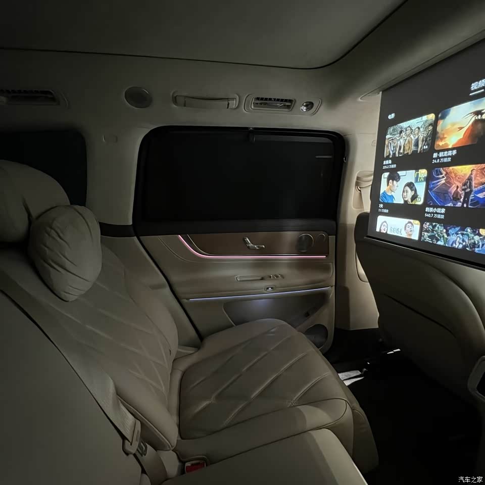 车内的设计很符合我的需求,五座版本后排可以选装零重力座椅,这个版本后排还标配了投影幕布,试驾时打开暮夜空间功能,再打开零重力座椅,找个自己喜欢的剧在幕布上看,感觉很沉浸。