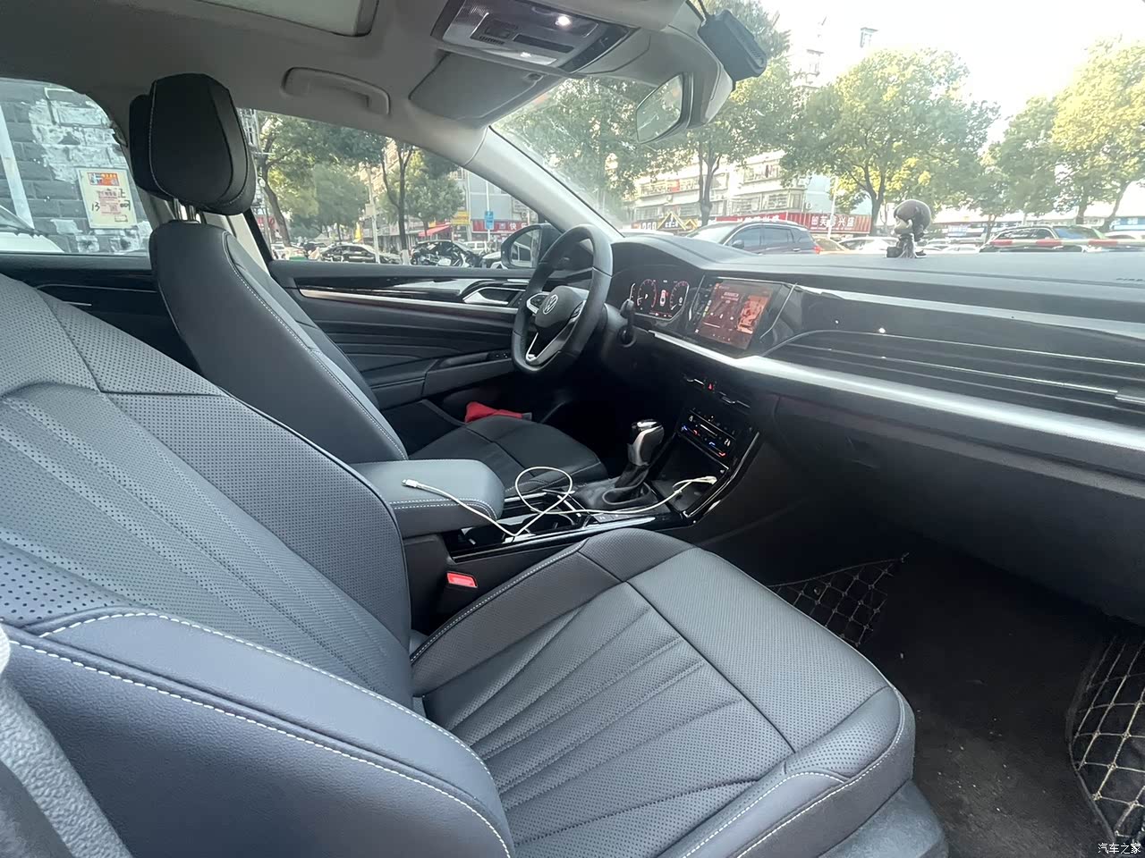 内饰就是大众一贯的风格,方向盘是真皮的,摸着挺有手感的,中控台大部分是软包,座椅减配成仿皮的了,听说以前是真皮的。不过这个我确实感受不到差别。座椅舒适性整体还可以。说实话跟现在很多国产车比确实有点老套,但龙耀版自带氛围灯和天使之翼,晚上开起来氛围感还可以,整体看着也不算太寒酸吧。