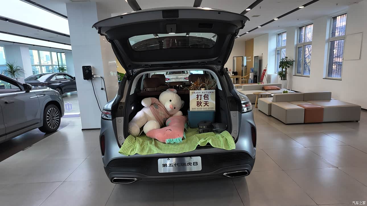 作为一款中型SUV,瑞虎8的空间表现可圈可点。前排座椅调整到合适位置后,后排乘客依然能享受到宽敞的腿部空间。家庭出行出去露营空间够大,后备箱空间是瑞虎8的一大优势,常规状态下容积已经相当可观,足以容纳多个行李箱。将后排座椅按比例放倒,可获得一个近乎纯平的巨大载物空间,对于喜欢露营的家庭来说,装下帐篷、睡袋、折叠桌椅等露营装备完全不在话下。这个特点让瑞虎8不仅是城市通勤的好手,也能成为周末郊游的可靠伙伴。