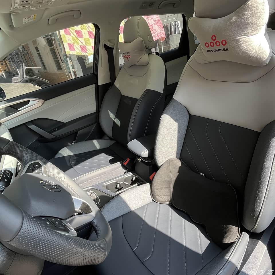 内饰整体我觉得还行,基础做工对得起这个价位,中控台按键布局清晰,操作简单,上手很快。就是座椅不是皮质的,手感一般,这个我已经计划自己加装真皮座椅,到时候乘坐体验应该能提升不少。