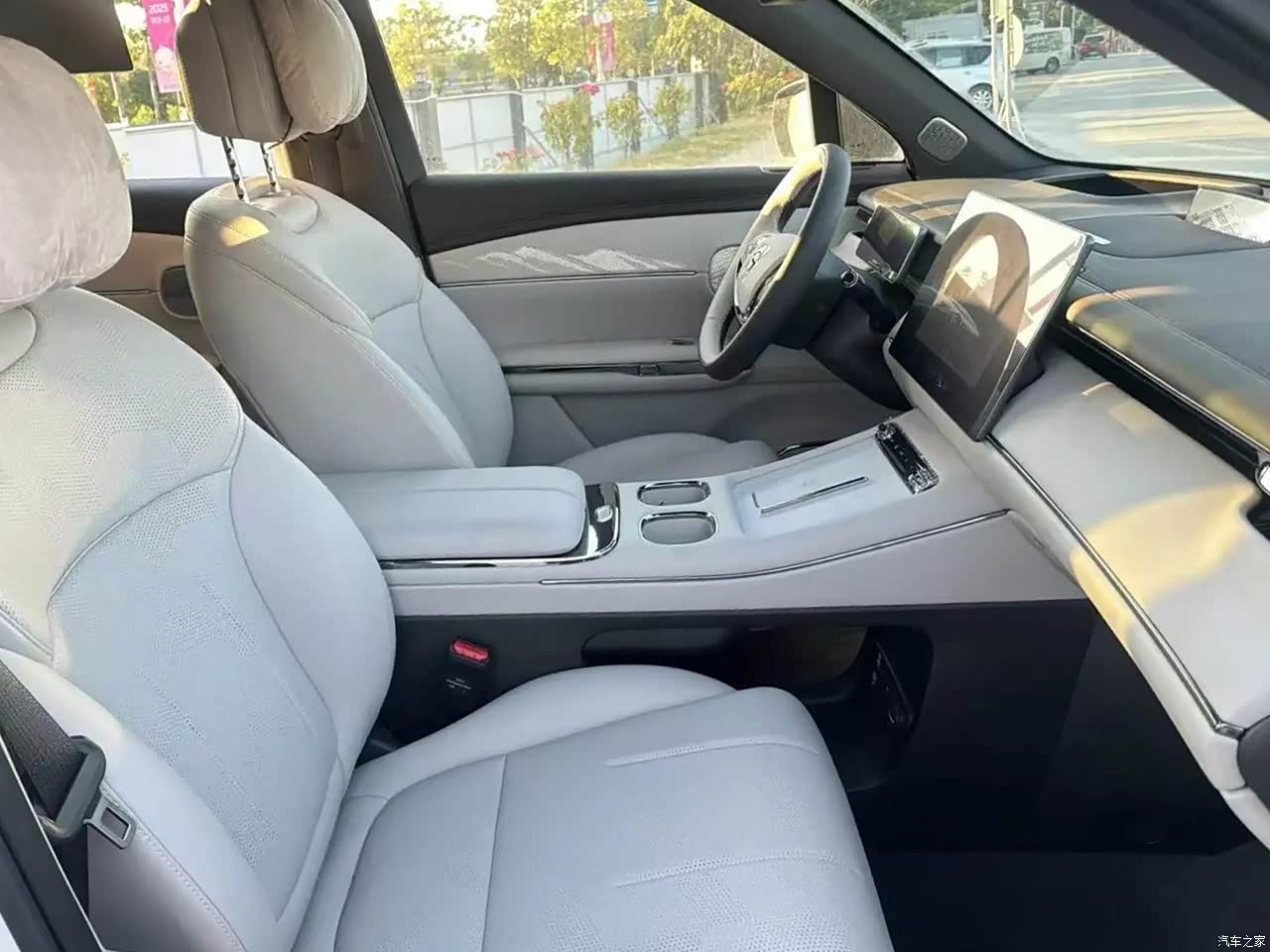 内饰的整体设计值得肯定,简约科技的造型比较气派,车内用料很多软质材料包裹,触手可及的地方手感都比较细腻,而且细节做工处理也到位,美中不足的是新车内饰有异味。