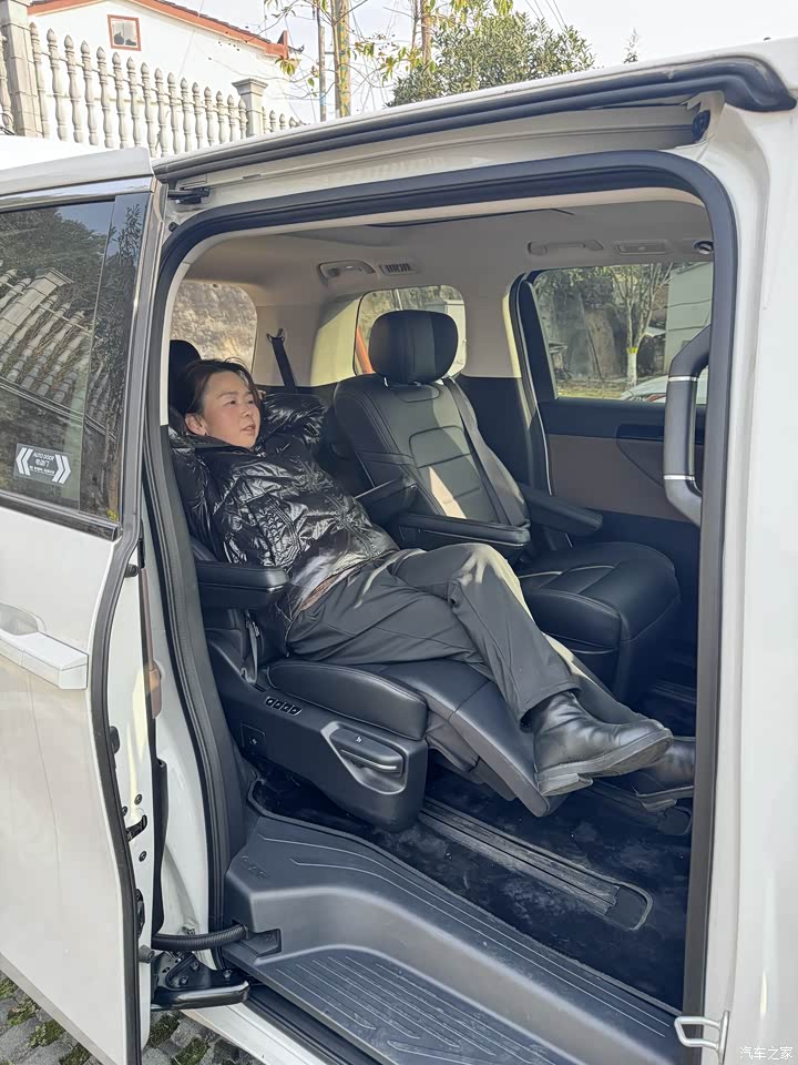 空间这块没得说,二排是独立座椅,宽敞也很舒适,座椅不仅有通风、加热功能,还可以大范围的调节角度,一键操作非常方便,老人可以轻松调整坐姿,老妈一上车就调整了一个超级舒服的角度翘着二郎腿就晒起了太阳,第三排空间也还可以,坐成年人完全没有问题,最主要第三排可以“影身”变成了大四座,这点是很经验的,不占空间,像逢年过节出门旅游装东西是完全没问题的