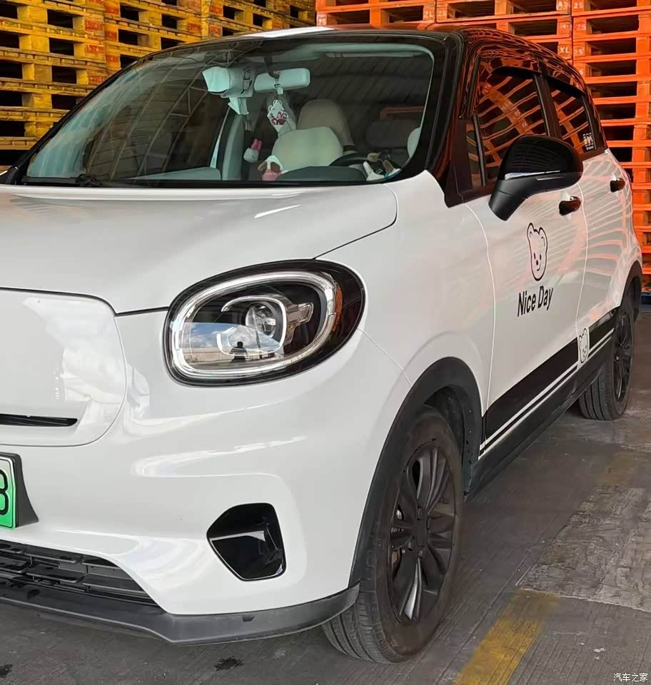 看起来圆润可爱,有点像以前路上见过的老款奔驰smart。车身小巧但线条完整,不会给人简陋的感觉。我选的是白色,很耐脏,洗车频率比其他深色车的邻居低不少,省了不少洗车钱和精力。