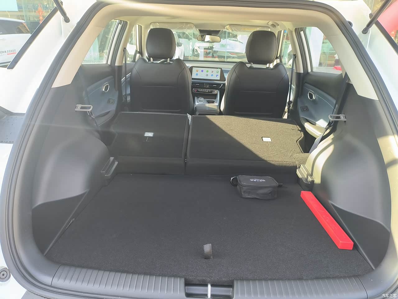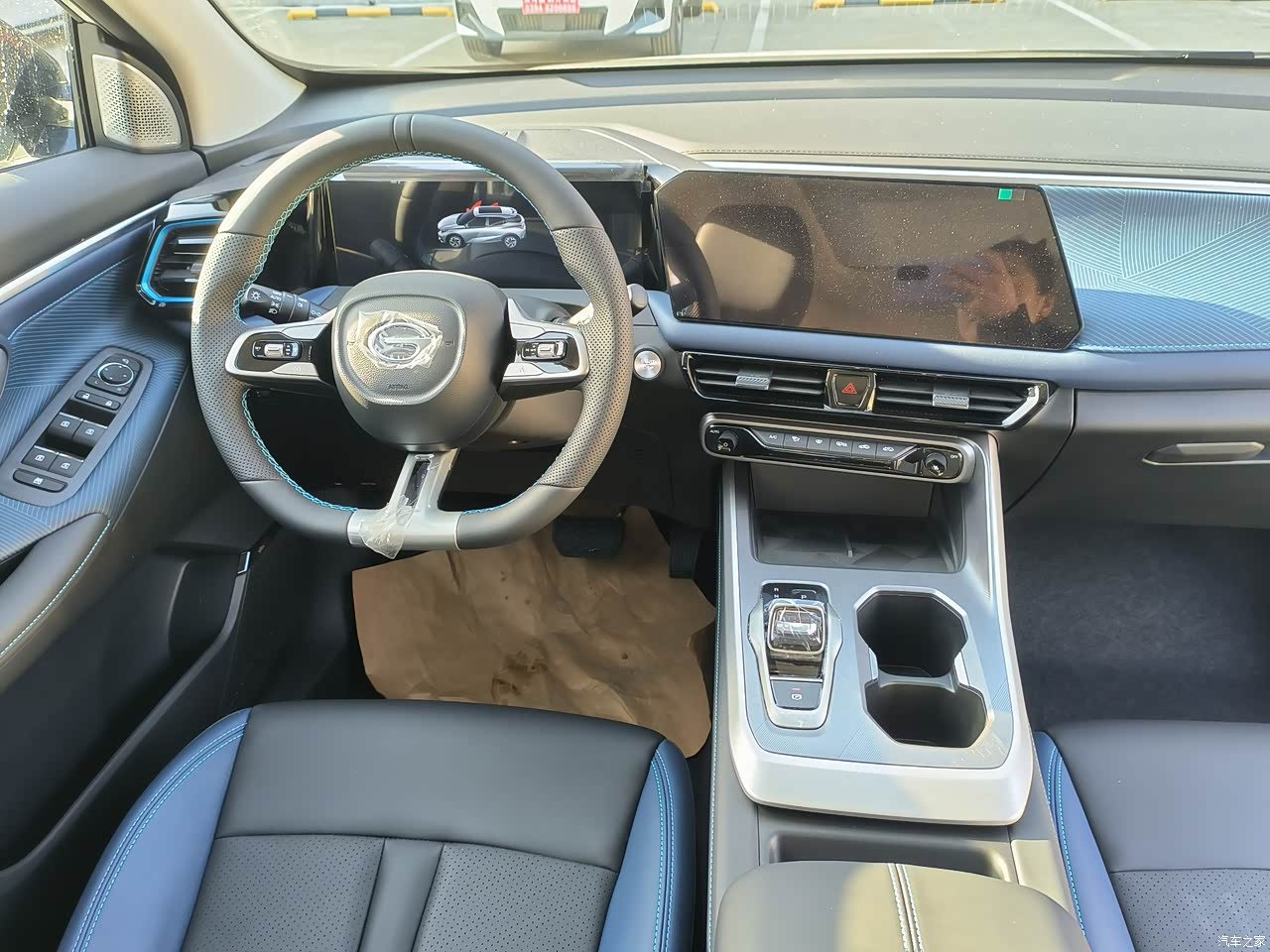 内饰也很吸引人,看着一点也不掉价,蓝色的内饰配黑色的我很喜欢,环抱式座舱很有安全感,80%都是软包材质,摸起来手感很好。双大屏清晰流畅,水晶电子档把,我握着手感很好。还有32色的氛围灯,晚上开着车,氛围灯打开,听着喜欢的音乐,氛围感拉满,储物格子挺多的,放个小物件足够了,别看他是小型的SUV,轴距够长,我165cm坐进去主驾驶头顶和腿部空间都宽松,后排也不拥挤,周末带小姐妹逛个街,大包小包也可以轻松装下,后排可以放到全平,可以当个小床,空间足够。