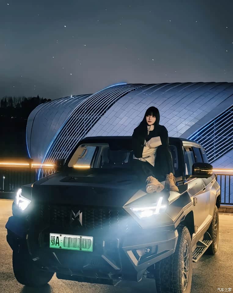方盒子+大量折线的设计风格,车头的“M”型格栅很有辨识度,不装灯的时候像个黑色的进气口,装了灯之后科技感拉满。车身颜色我选的哑光灰,耐脏且不张扬。轮眉和侧裙的黑色塑料件很厚实,刮蹭了也不心疼。不过,这种设计在高速上风阻系数肯定小不了,后面说能耗的时候会提到。