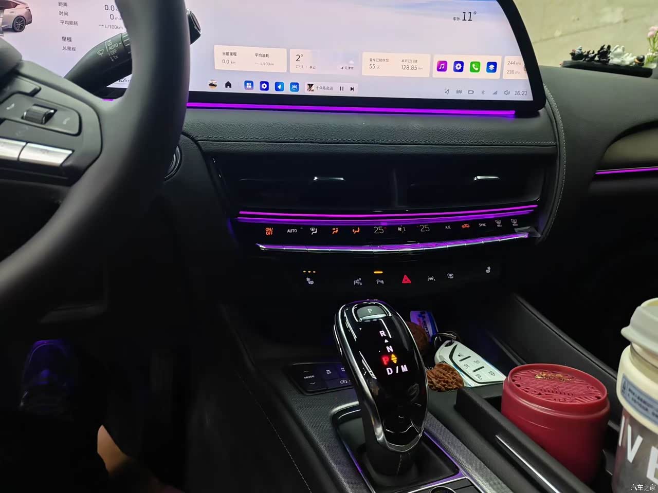 内饰可以说非常漂亮了,大连屏是我喜欢的类型,清晰度很高非常养眼,在这个新能源时代,更是保留了一直有实体按键,非常实用,CT5的内饰稍微装扮一下就很漂亮,很有氛围感,因为我是一个要给自己提供情绪价值,所以我在原厂的氛围灯基础又加了前排的氛围灯,我甚至找不到外观和内饰都好看的车了,当然这是我个人观点