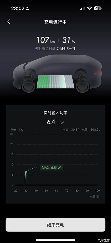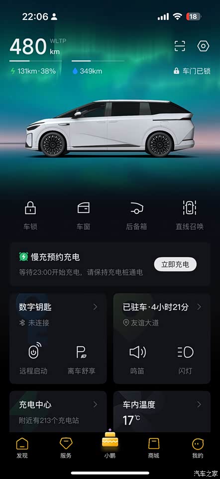 之前用的特斯拉,家充支持11kw,一般3-5小时能充满,小鹏只支持7kw,一小时只能充10%左右,有点慢了。