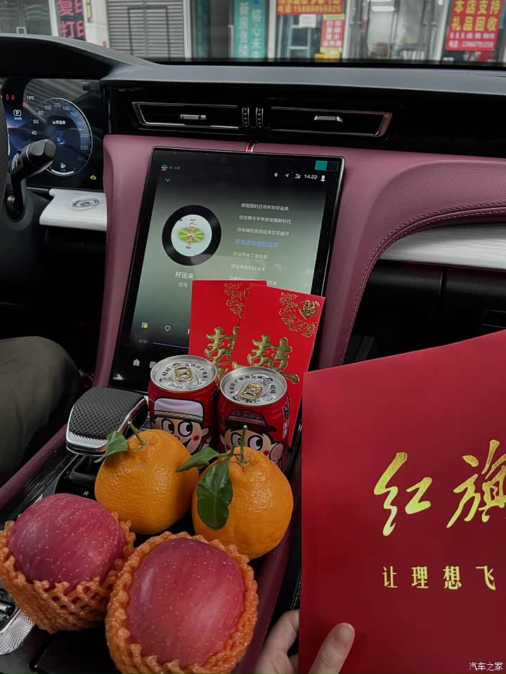 曜石黑的红旗H5车身线条流畅,搭配直瀑式镀铬格栅与红旗立标,沉稳又霸气。婚礼接亲时开在路上,回头率拉满,黑色车身衬着婚车红绸,中式喜庆感直接拉满。打开车门更是惊喜,红黑撞色内饰戳中新婚氛围,红色运动座椅软韧舒适,缝线工艺精致,中控台红色饰条与黑色烤漆面板相呼应,轻奢又有仪式感,坐进车里满是专属新婚的浪漫。 2.0T版本的动力没让人失望,油门踩下推背感明显,男友说高速超车格外从容,8AT变速箱换挡丝滑,日常通勤,周末自驾都够用。空间也很贴心,后排坐三位亲友不挤,接亲时放婚纱,伴手礼绰绰有余,后备箱容积也能装下短途旅行行李。 作为新婚夫妻的第一台车,红旗H52.0T黑外红内既满足我们对婚车颜值的期待,又有实打实的动力与空间,国货之光名不虚传,愿这台红旗陪我们走过往后每一段幸福旅程。