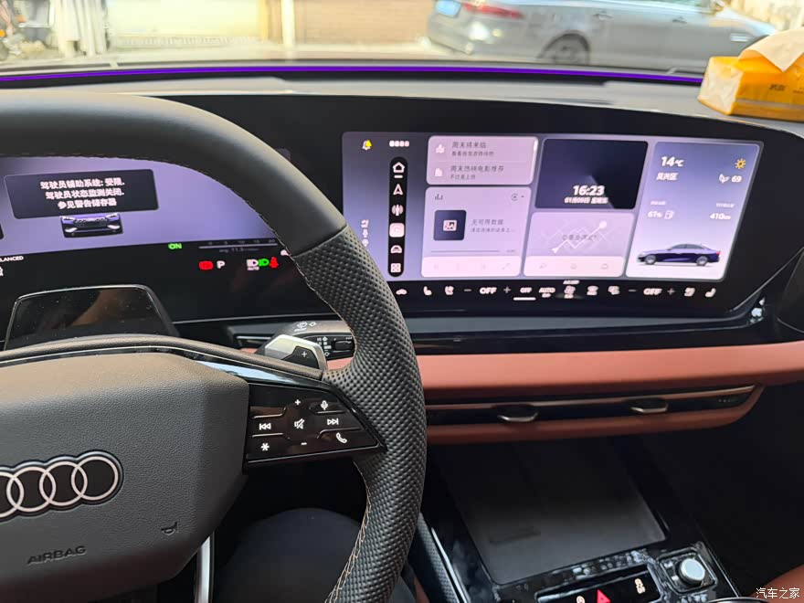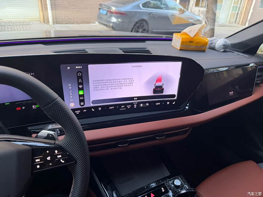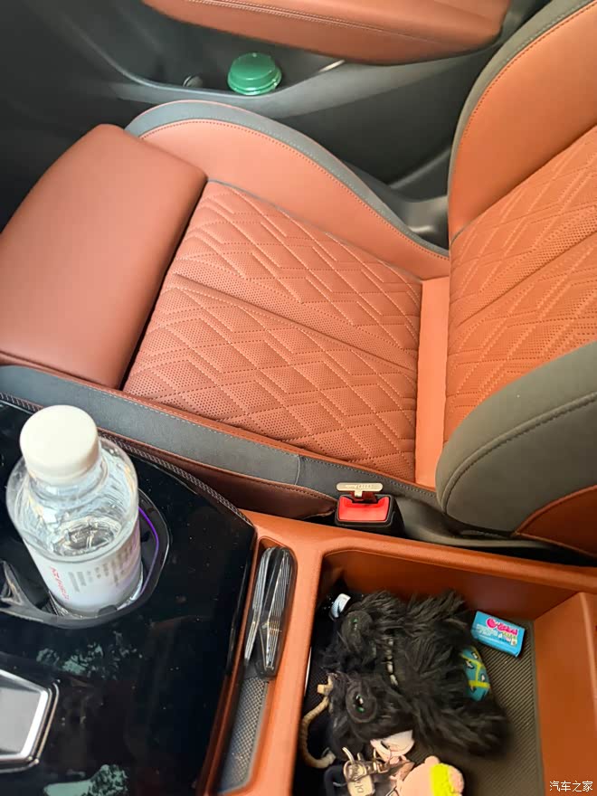 这款车的内饰是我一眼就爱上的琥珀红皮质搭配,触感细腻柔软,坐上去支撑感和包裹感都恰到好处,长时间开车也不会觉得累。 中控区域采用了悬浮式双联屏设计,显示清晰流畅,操作逻辑也很直观,开车时盲操基本不会出错。三幅式方向盘握感饱满,多功能按键布局合理,接打电话、切歌都能轻松搞定。 整个内饰的做工非常扎实,缝线均匀细致,大面积的软性材质包裹,摸上去高级感拉满。车内的氛围灯有多种颜色可以切换,晚上开车时调个暖色调,氛围感直接拉满,不管是自己开还是带朋友出门,都特别有格调。
