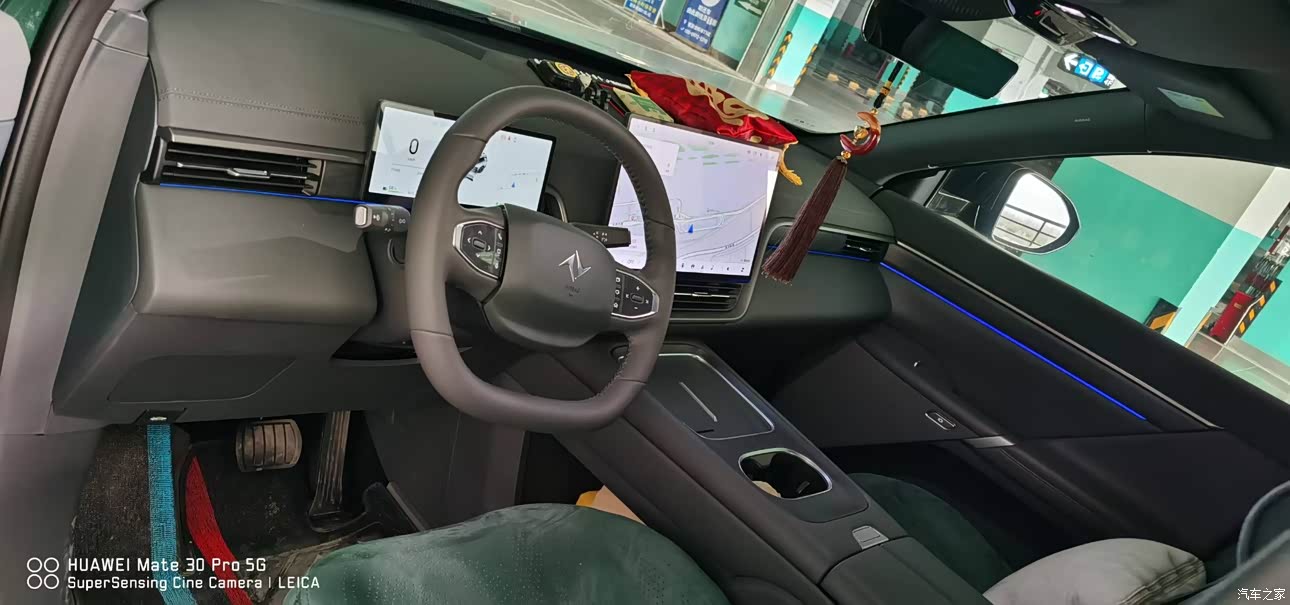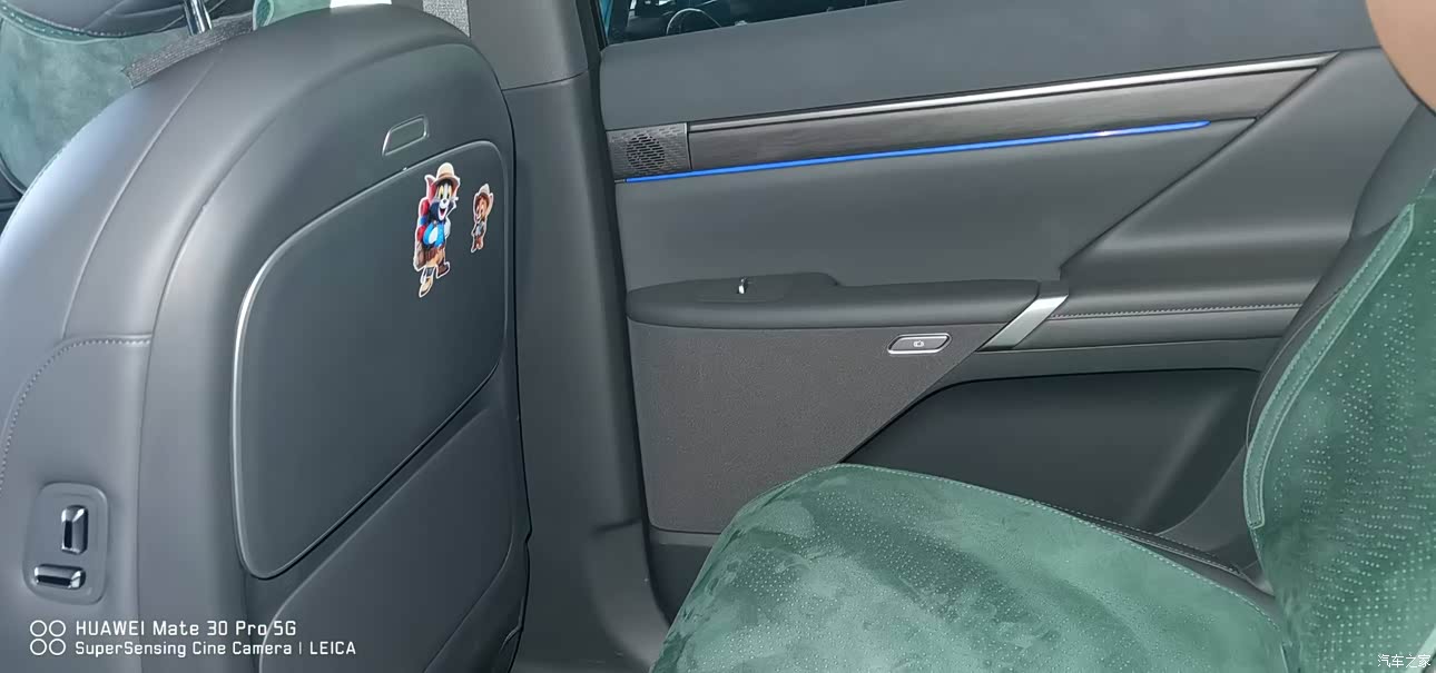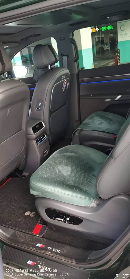 外观这一台选的是仙踪绿,在展厅白灰太常见了,这个颜色看着不刺眼,光线强的时候更像墨绿,阴影里带一点青灰,落在车身上有质感,路口停车,旁边邻居会问这绿怎么叫,车长接近五米,21寸的轮毂塞满轮拱,侧面线条不拖沓,站在后45度看起来是那种稳,前后灯做成贯穿式,晚上点亮的识别度清晰,有评测把漆面的均匀度和一些接缝做工拿出来说,我自己围着车看了几圈,个别位置能看出小差异,放远一点整体没影响。