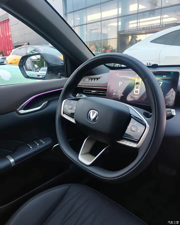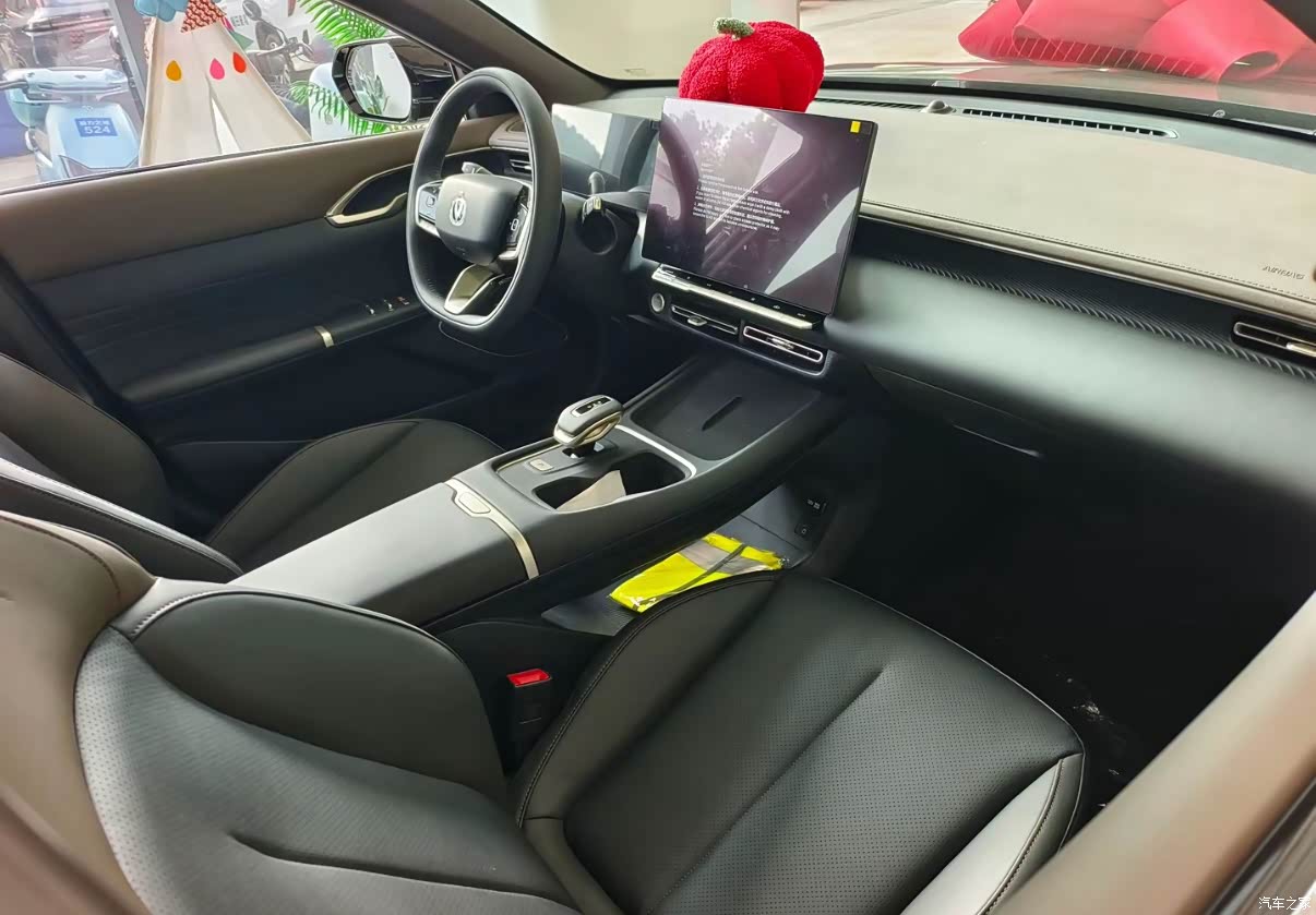 坐进车内,第四代逸动的内饰设计完美呼应了外观的运动基因 界面流畅清晰 让驾驶更轻松 比较显高级配置拉满 屏幕也大 娱乐也可以 听歌也可以,内饰也很年轻化 方向盘皮质的 座椅也非常的运动话