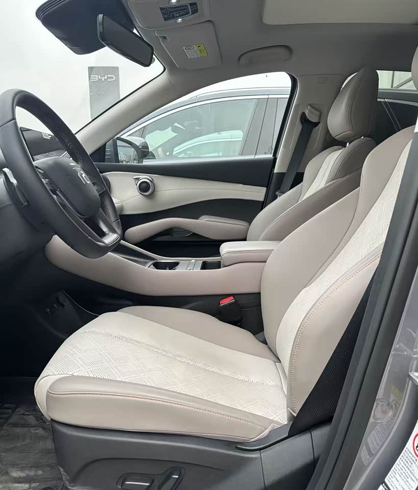 元PLUS的外观时尚而不张扬,符合大众审美。车身比例协调,紧凑但不显小气。我选择的颜色质感高级,且相当耐脏。细节上,轮毂造型动感,隐藏式C柱营造出悬浮车顶效果。美中不足的是,车身下包围的黑色塑料面积较大,若能用车身同色或更有质感的材料,整车档次感会进一步提升。